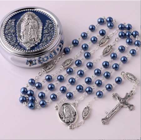 速卖通 天然水晶六角柱吊坠 子弹头吊坠 黑色玻璃珍珠项链宗教饰品rosary