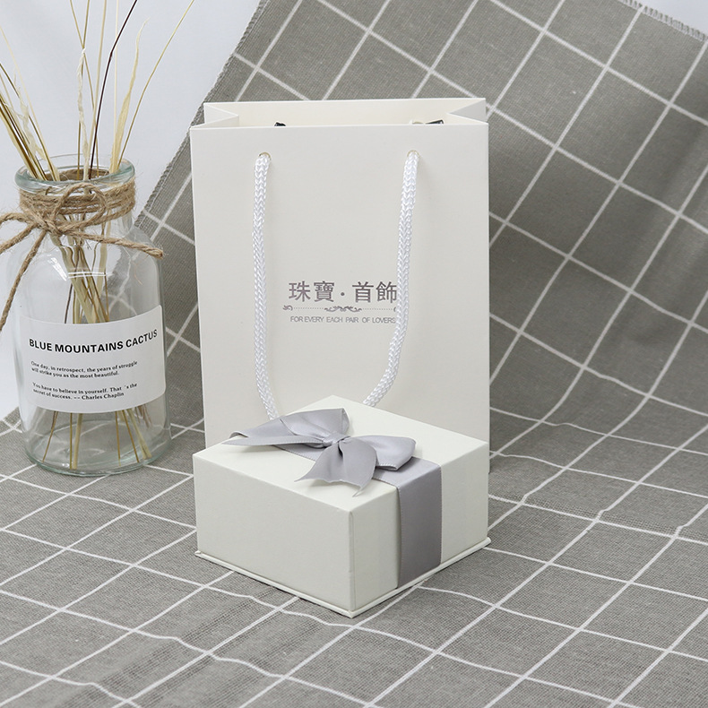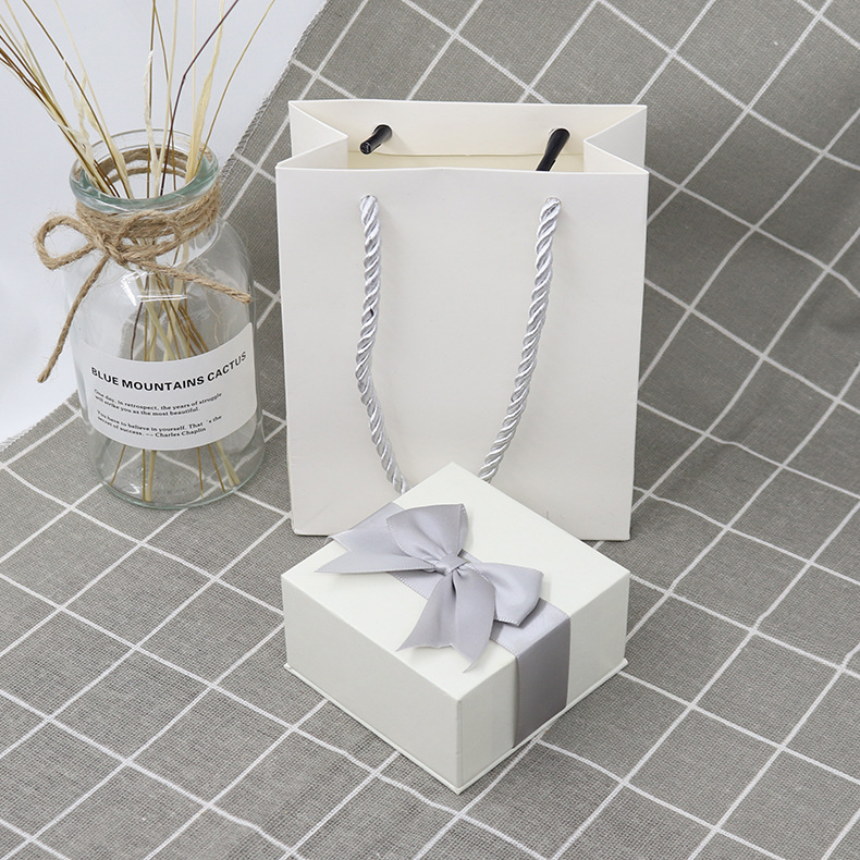 Specifications and models: White V-slot bow box blank letterless handbag; Large size 80 × 80 × 43mm