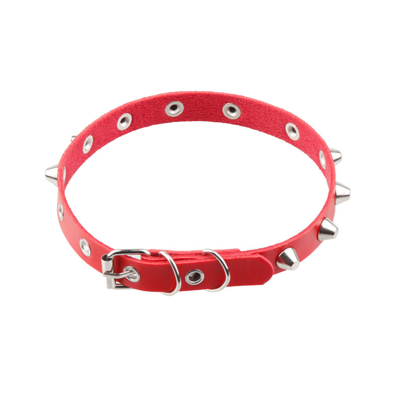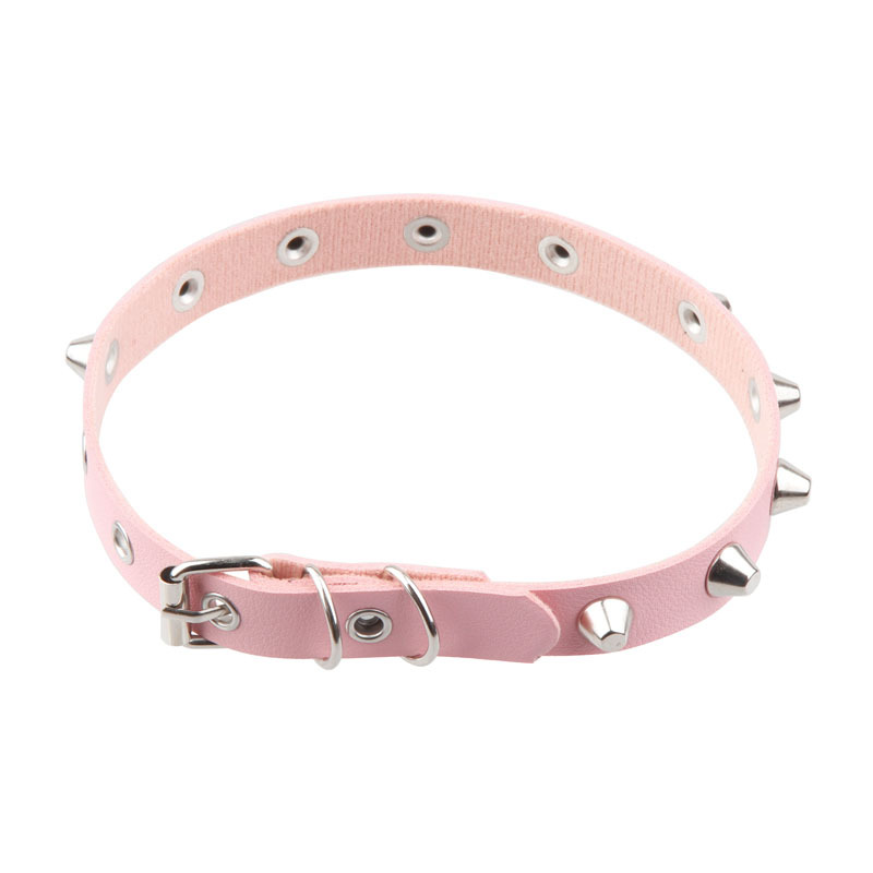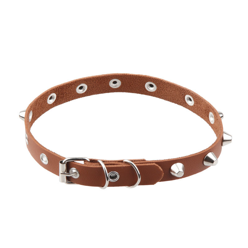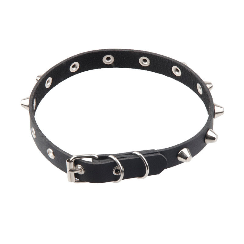 产品名称:欧美朋克风桶钉项圈 脖套时尚复古 气眼皮质手环男少女项链锁骨链