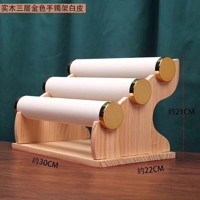 Solid Wood Gold Three-Layer S-Shaped Bracelet Rack White Leather