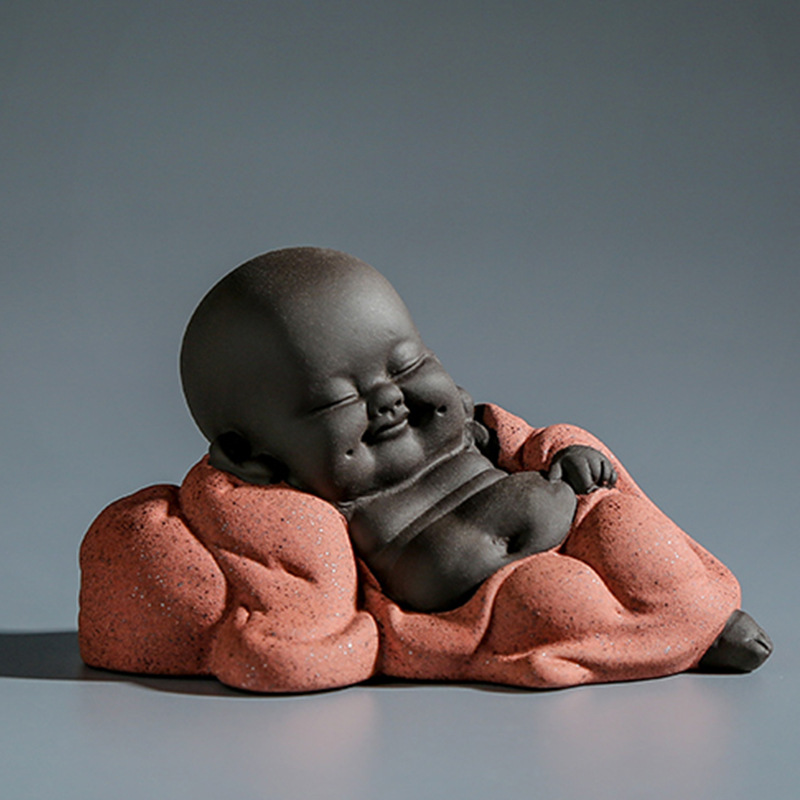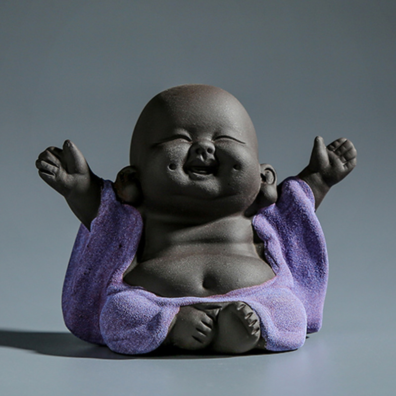 Purple Clay Tea Pet Can Raise Maitreya Laughing Buddha Ornaments Small Monk Ceramic Handmade Fine Tea Set Accessories Creative Small Tea Play