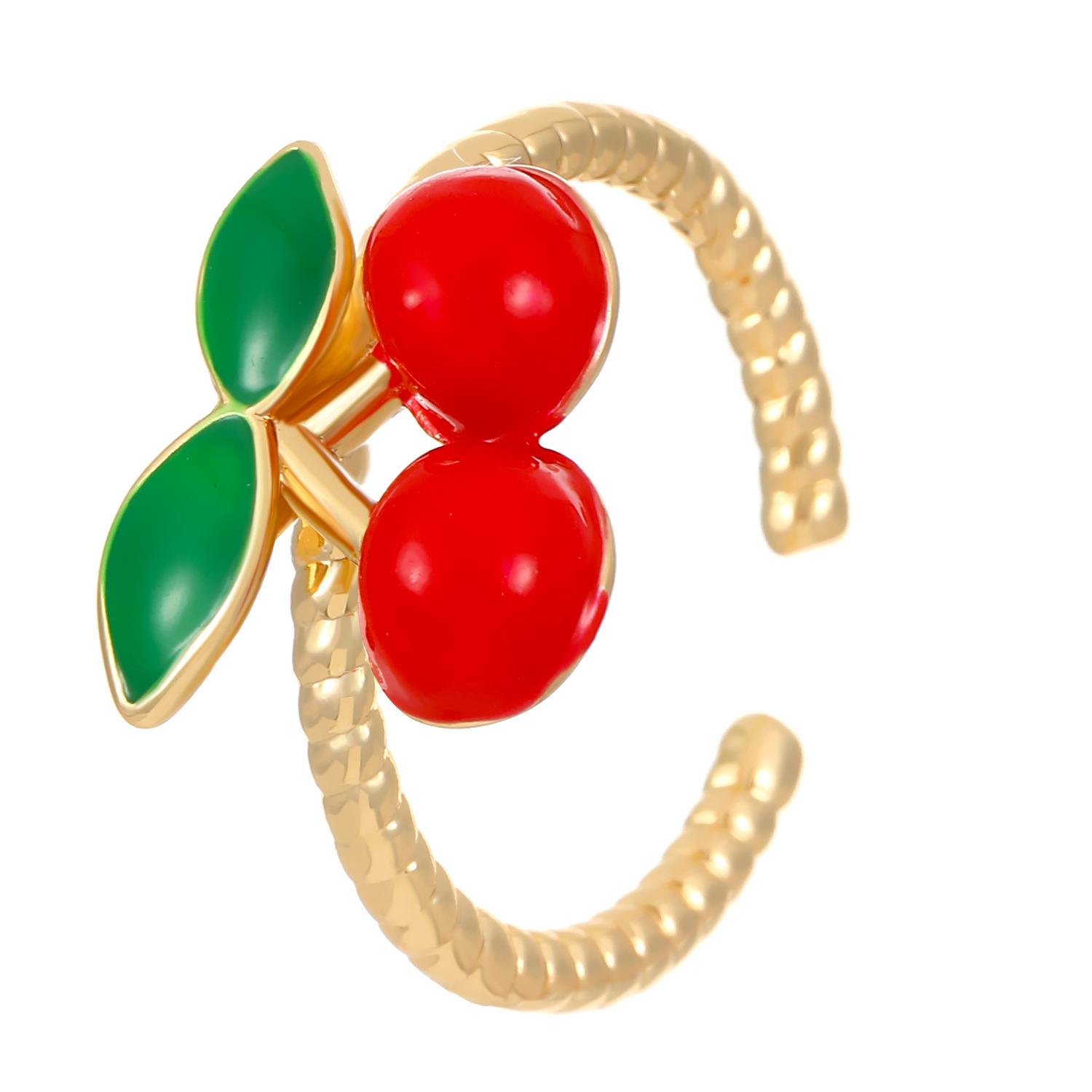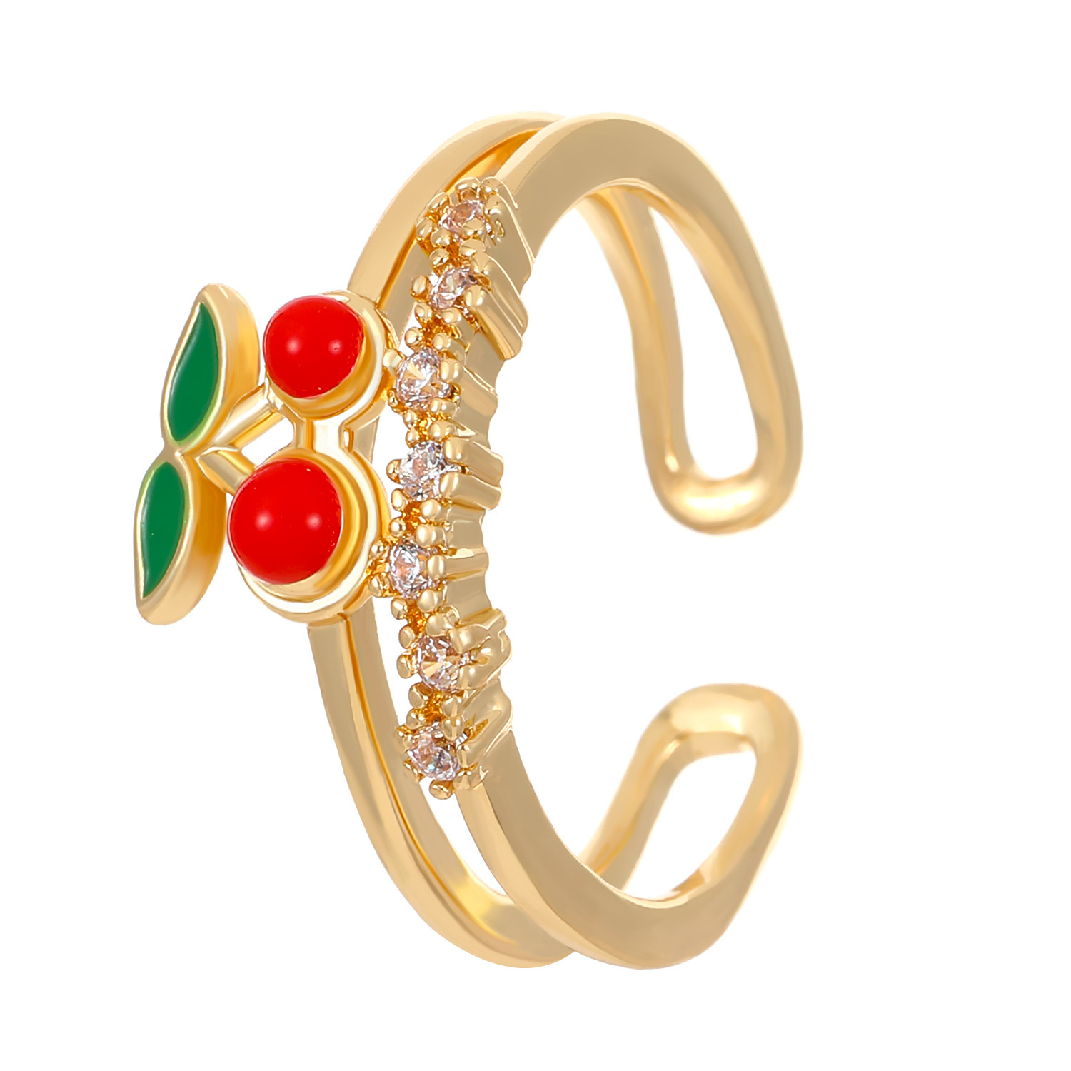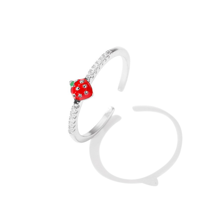 Korean Style Fresh Oil Dropping Strawberry Diamond Finger Ring ins Distinctive Sweet Student Girlfriend Tail Ring Open Ring