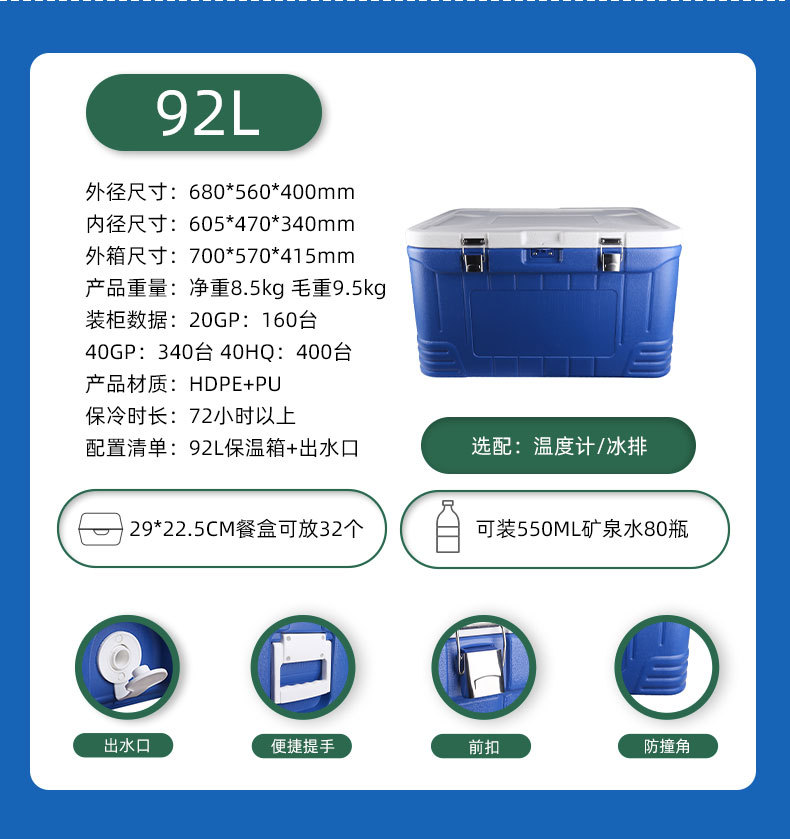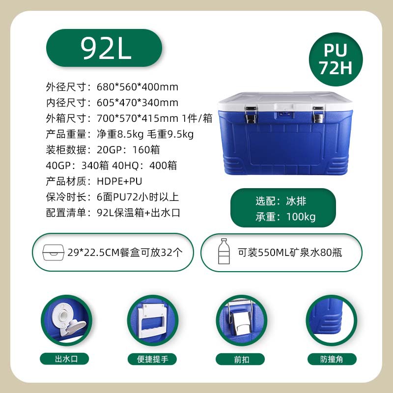 Specifications: [commercial selection] 95l blue cover extra large capacity [high-end pu] keeps cold for 72 hours and comes with water outlet