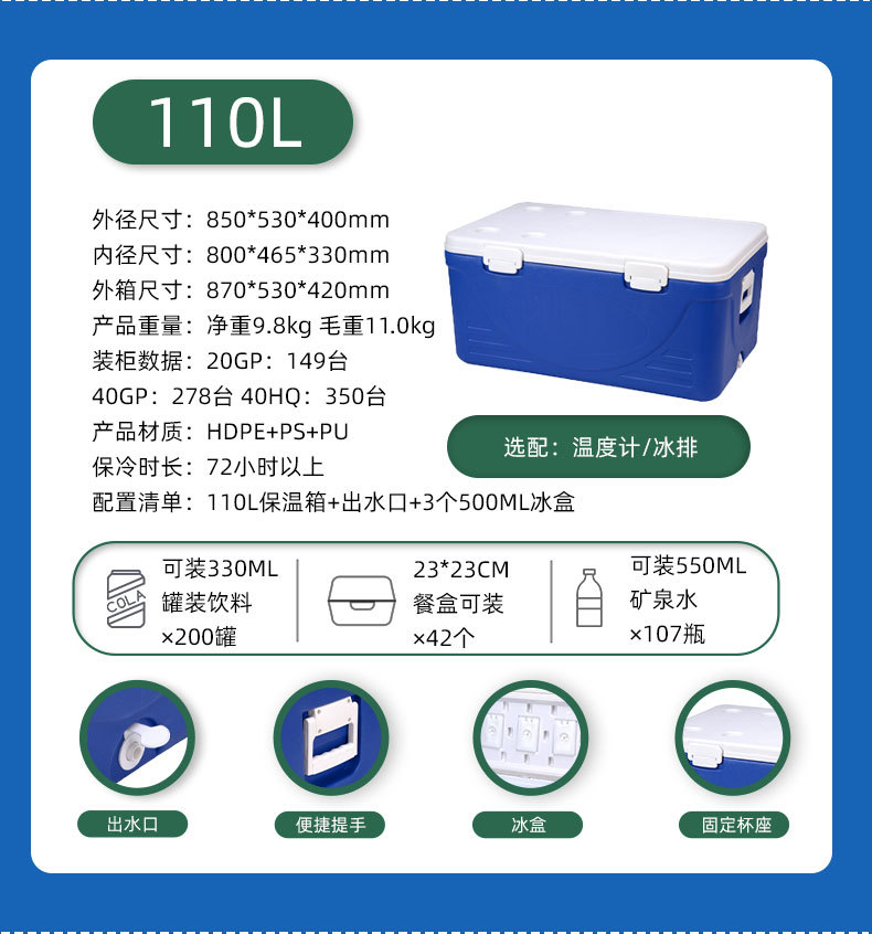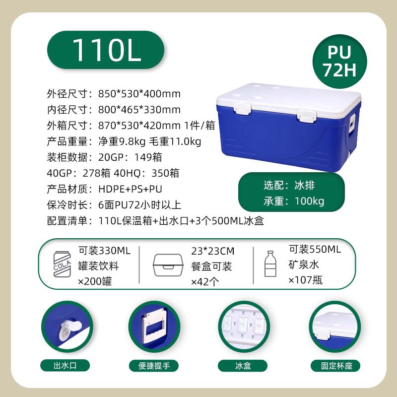 Specifications: [commercial selection] 110l extra large capacity [high-end pu] keeps cold for 72 hours and comes with water outlet