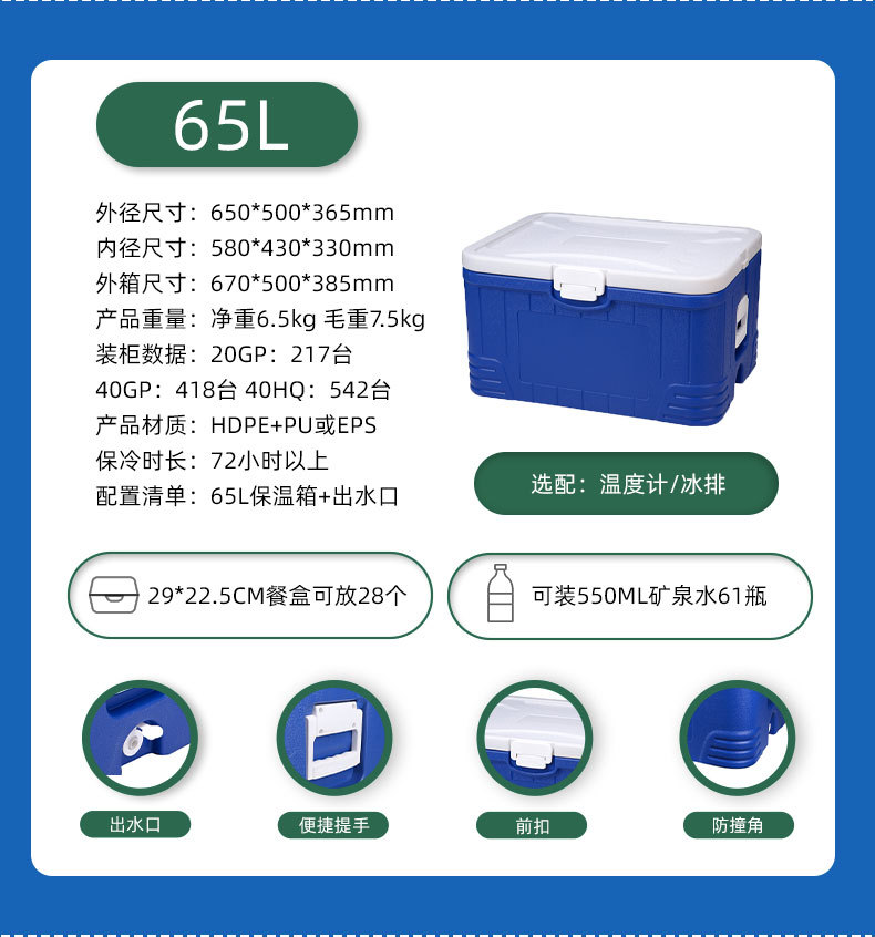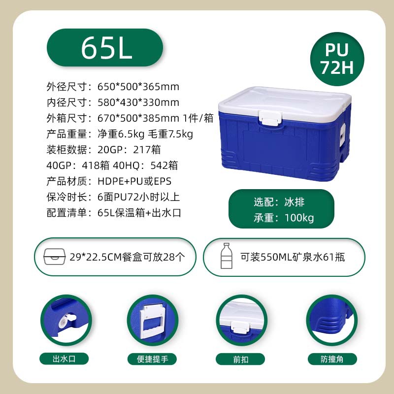 Specifications: [commercial selection] 65l blue cover [high-end pu] keeps cold for 72 hours and comes with water outlet