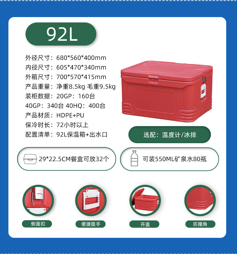 Specifications: [commercial selection] 95l red cover extra large capacity [high-end pu] keeps cold for 72 hours