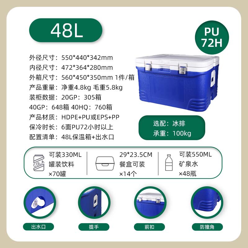 Specifications: [commercial selection] 48l blue cover [high-end pu] keeps cold for 72 hours and comes with water outlet
