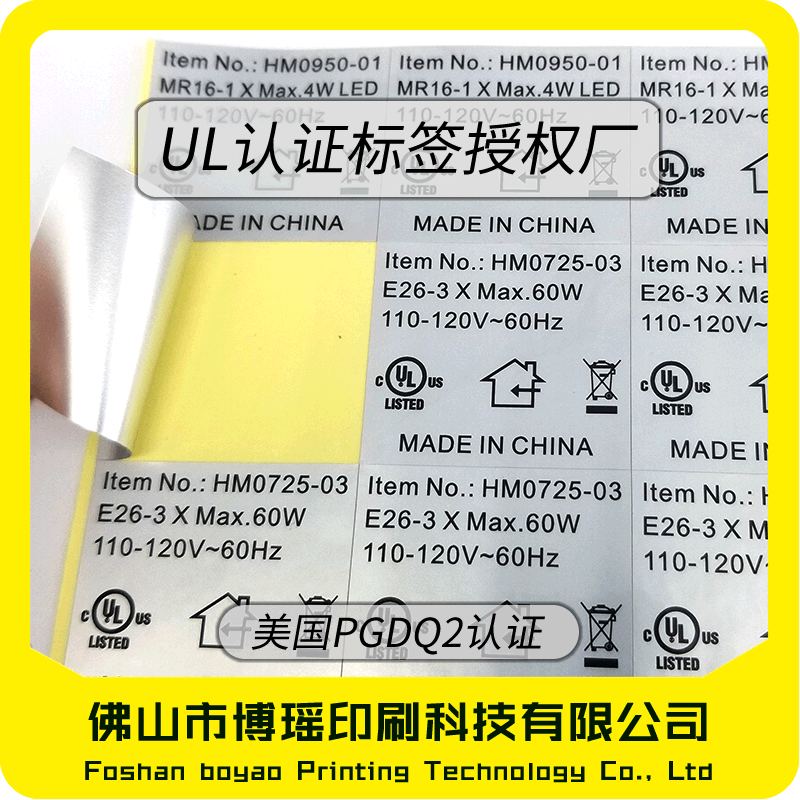 American ul label printing temperature resistant 150 degree adhesive label lighting transparent adhesive ul label printing