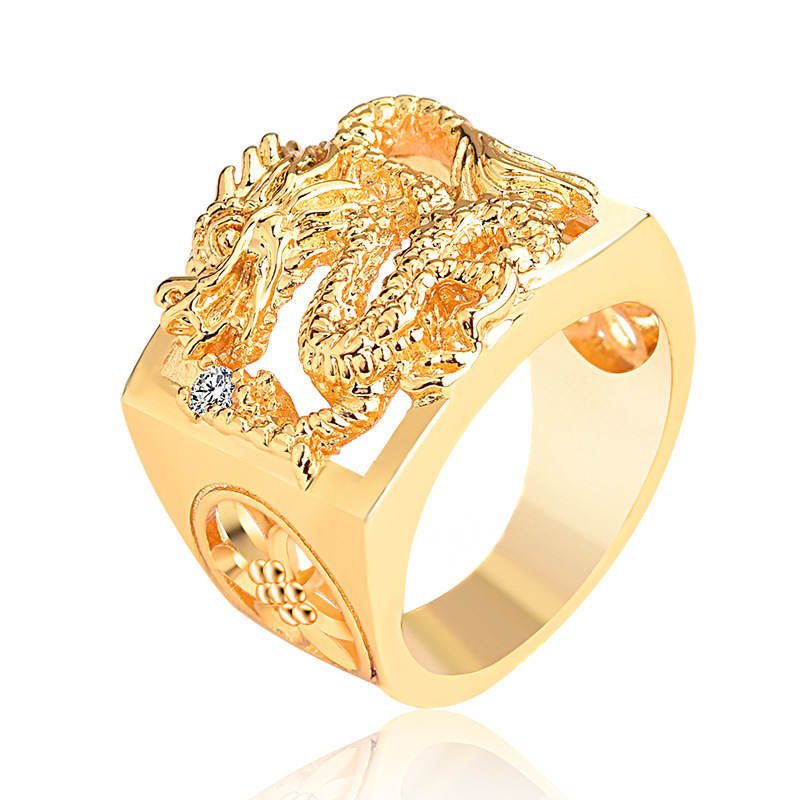 Chenrui Wish Style Men's Domineering Dragon Ring Vietnamese Sand Gold Imitation Gold Copper Gold-Plated Cut Out Dragon Ring Dragon Pattern