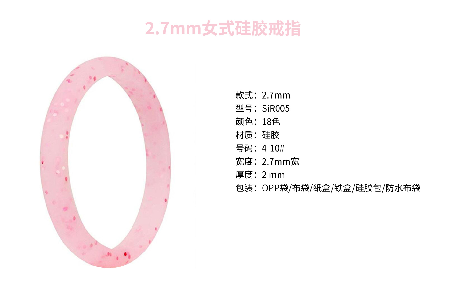 Cross Border in stock Distinctive 2.7mm Wide Silicone Ring Women's Birthday Gift Bracelet Accessories Glitter Silicone Ring