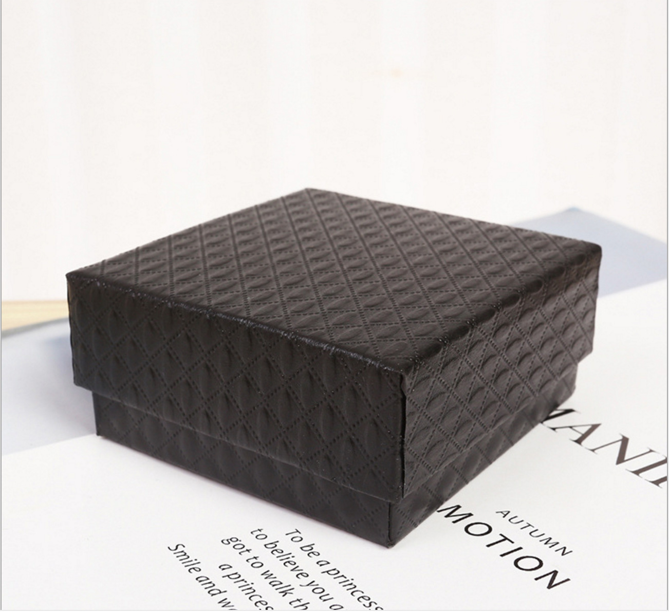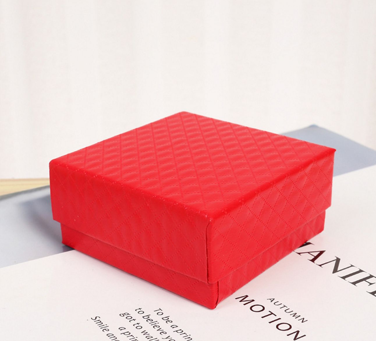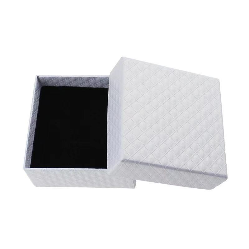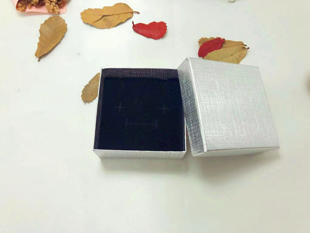 外包纸珠光荔枝纹,内卡纸700克,海绵厚1.5腹黑绒布,内可放置戒指、耳环、项链、手链等。