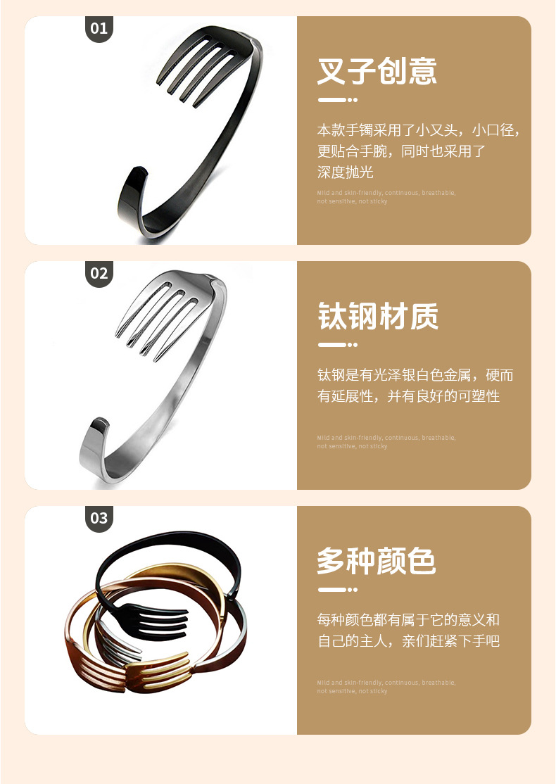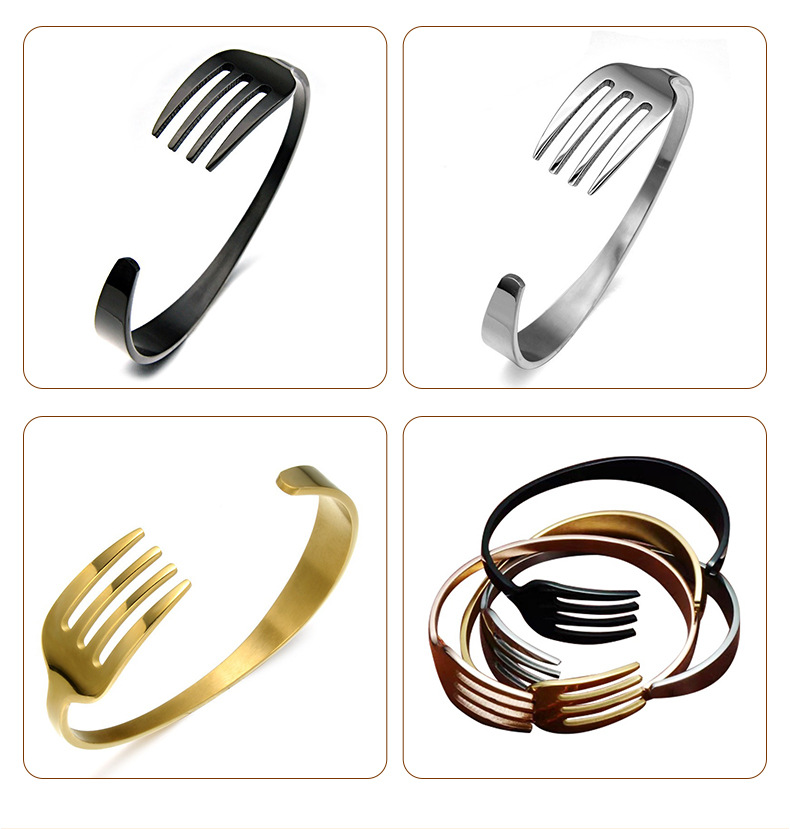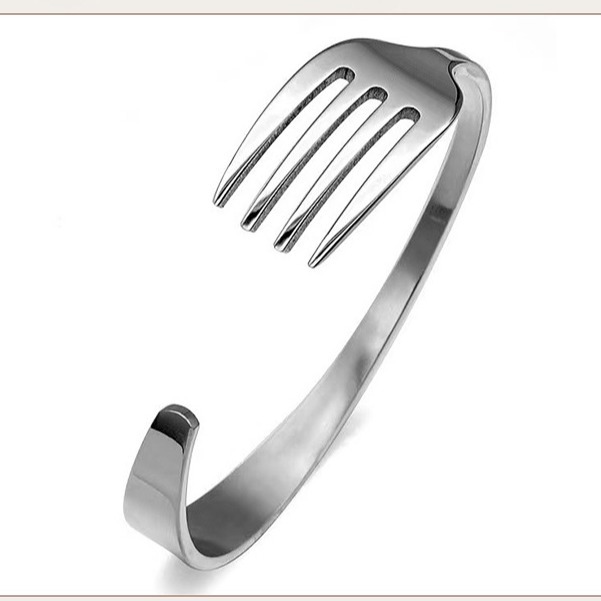 Cross-border European and American Simple Stainless Steel Fork Bracelet Creative Personality Korean Style Western-style Knife and Fork Opening Titanium Steel Jewelry