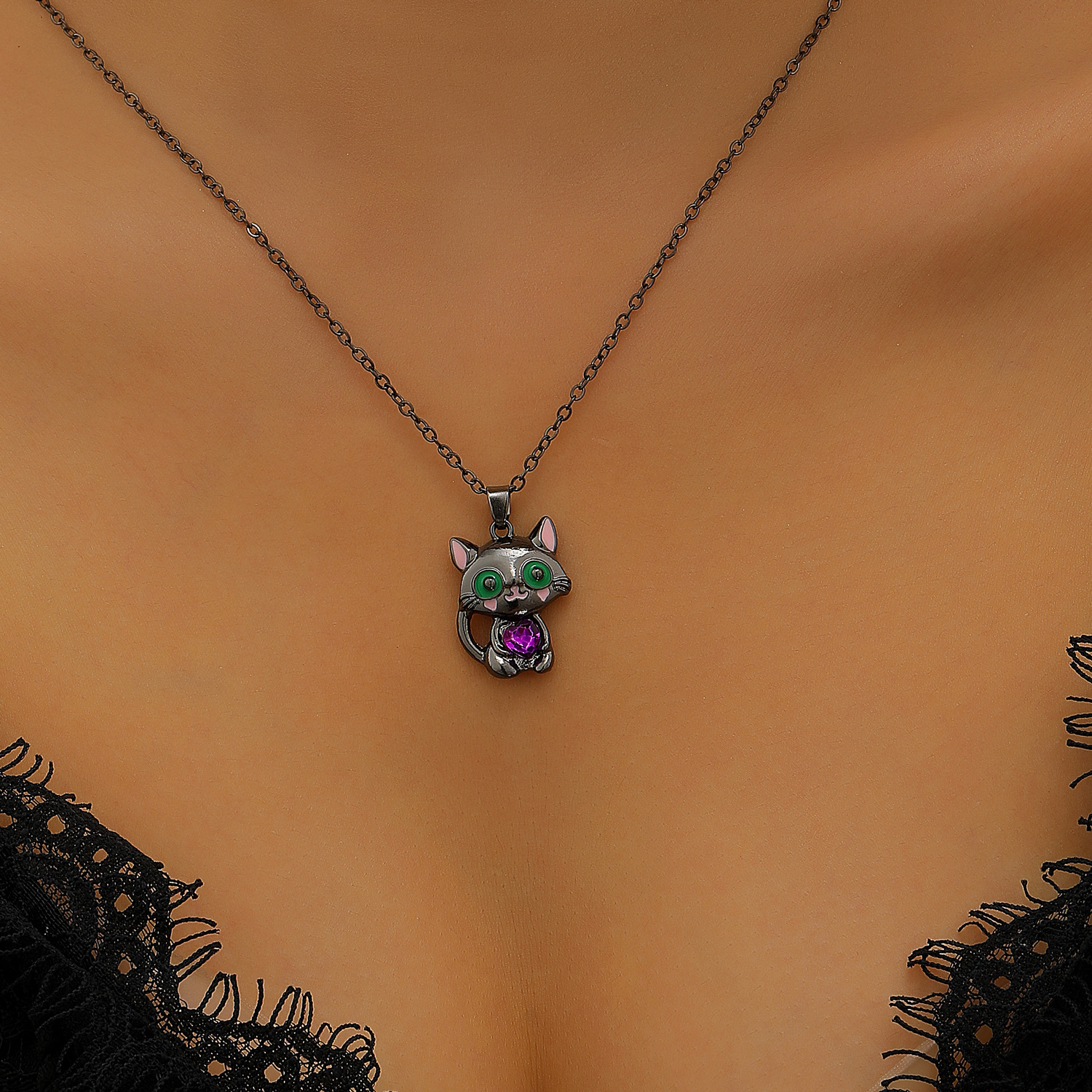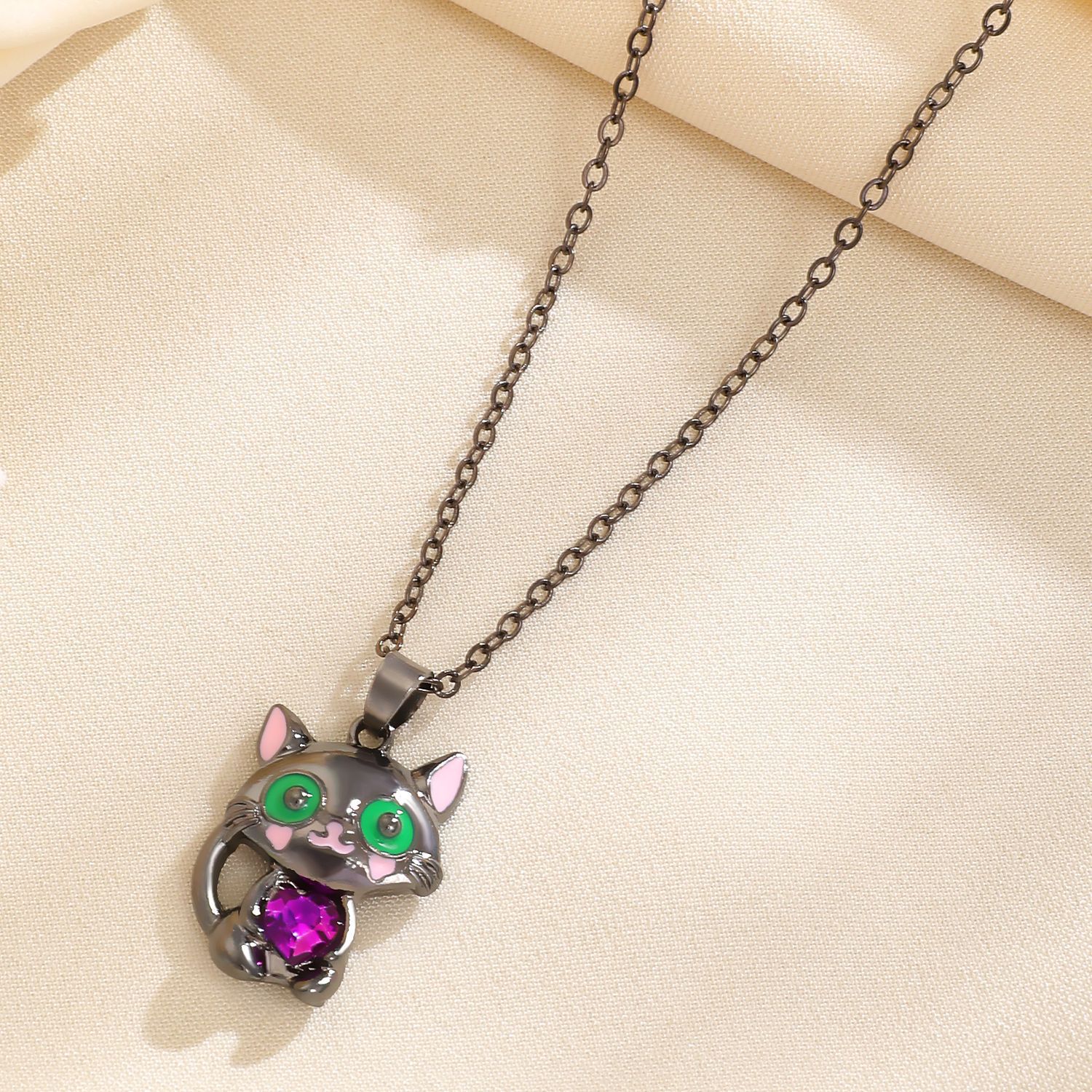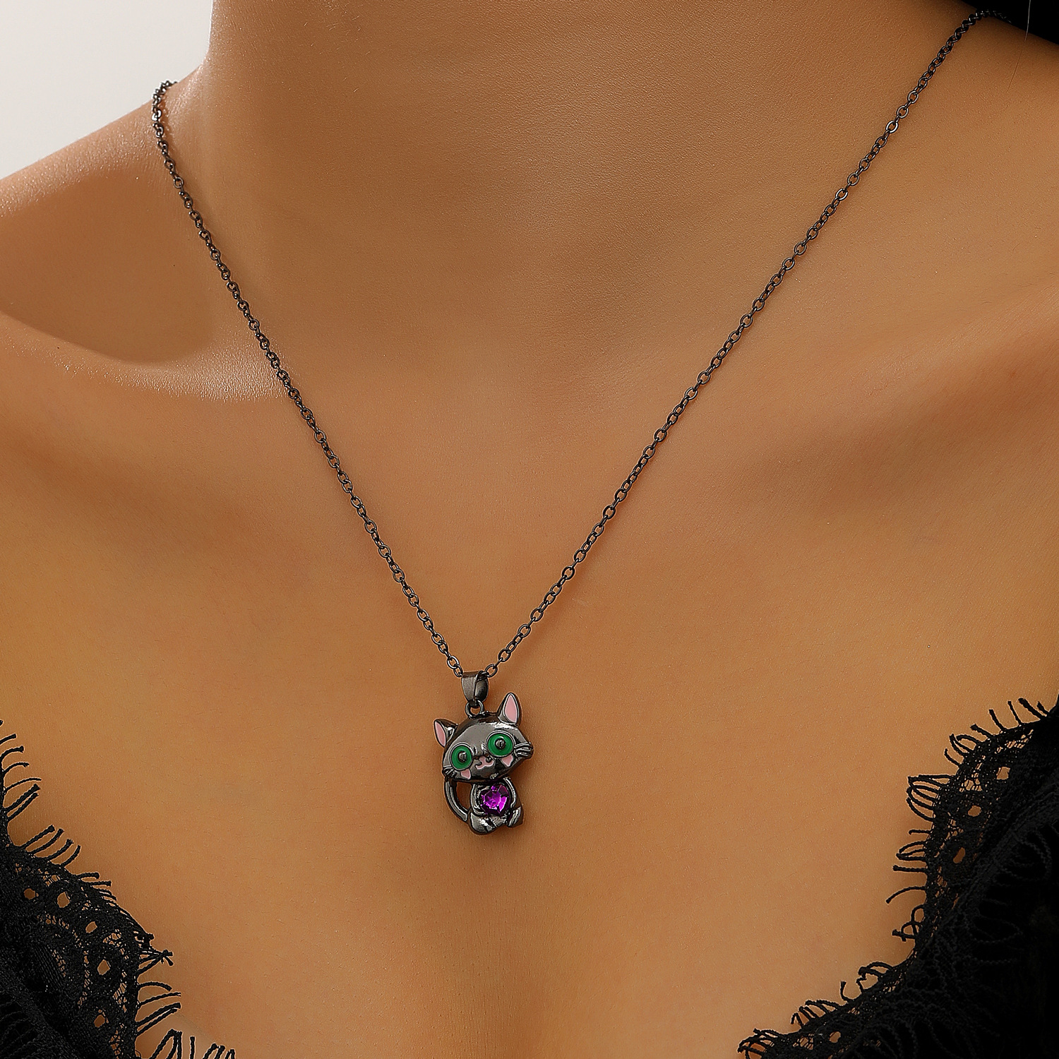 Color: Dark cute cat necklace gun black 11656