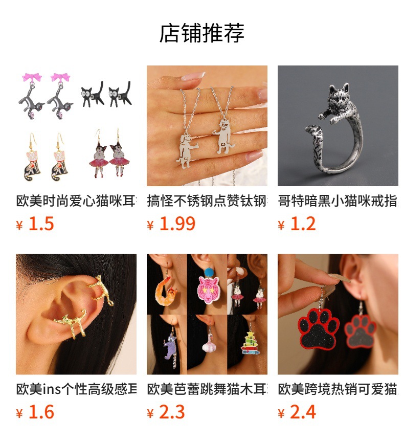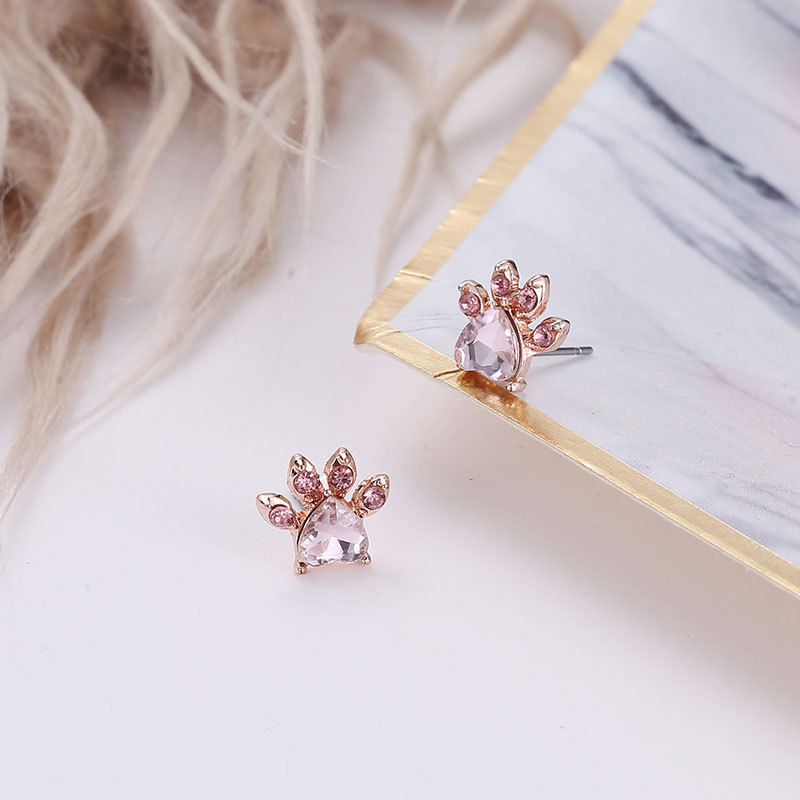 South Korea Fashion suit Cute Cartoon Cat's Claw Necklace Earrings Four-piece Cat Footprint Zircon Ring Bracelet for Women