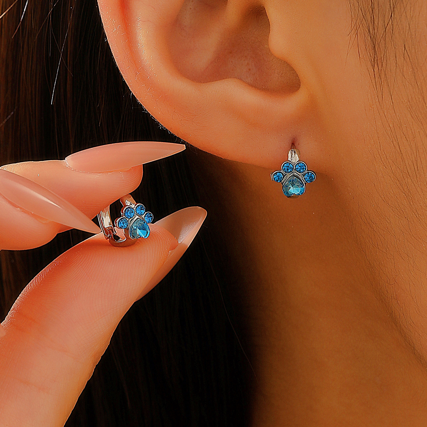 Color: 01 white k a-1130 (blue cat claw earrings)
