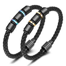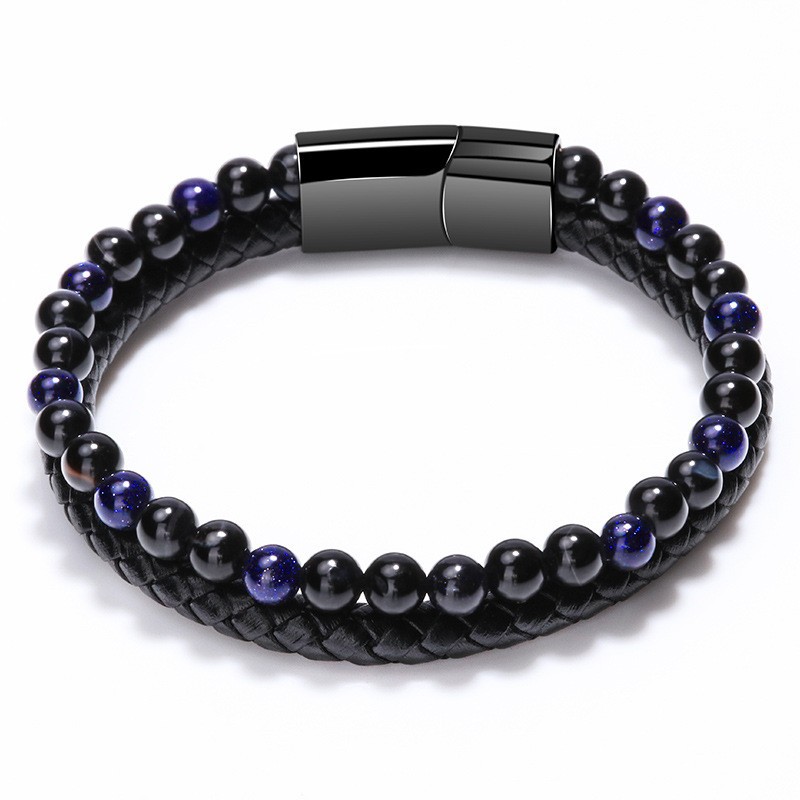 Cross-Border Simple Natural Volcanic Stone Bracelet for Men with Magnetic Clasp Woven Tiger Eye Stone Beaded Leather Rope Bracelet Jewelry
