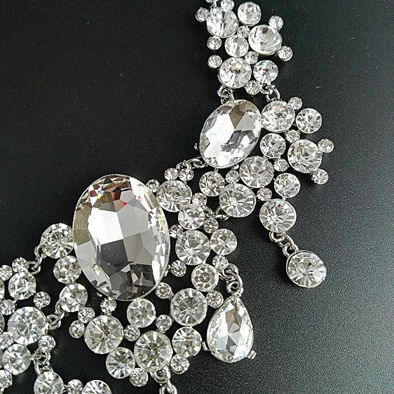 European and American bridal alloy rhinestone crystal high-end fashion perfect earrings necklace three-piece jewelry for wedding