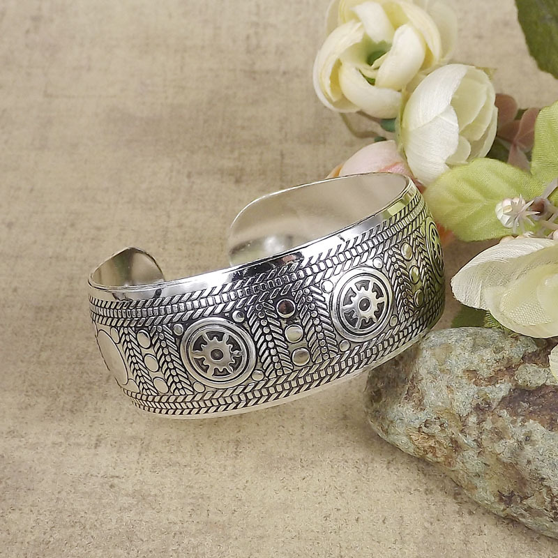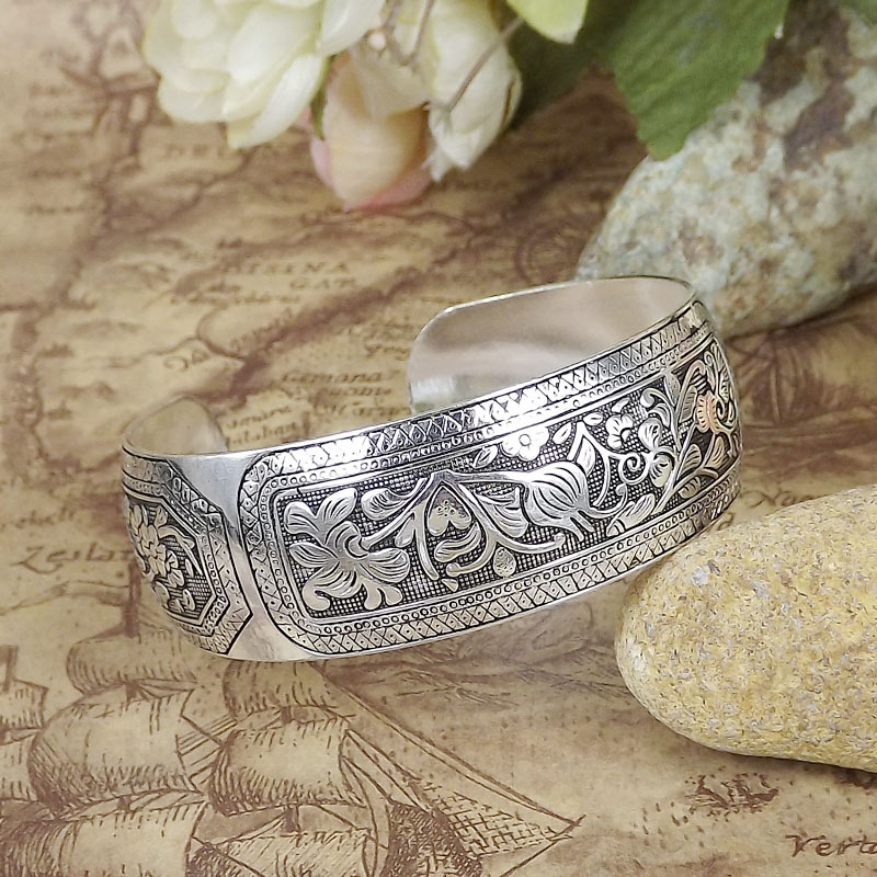 Exotic Miao Silver Bracelet Xizang Silver Bracelet Retro Jewelry Indian Style Ancient Silver Accessories Women's Bracelet