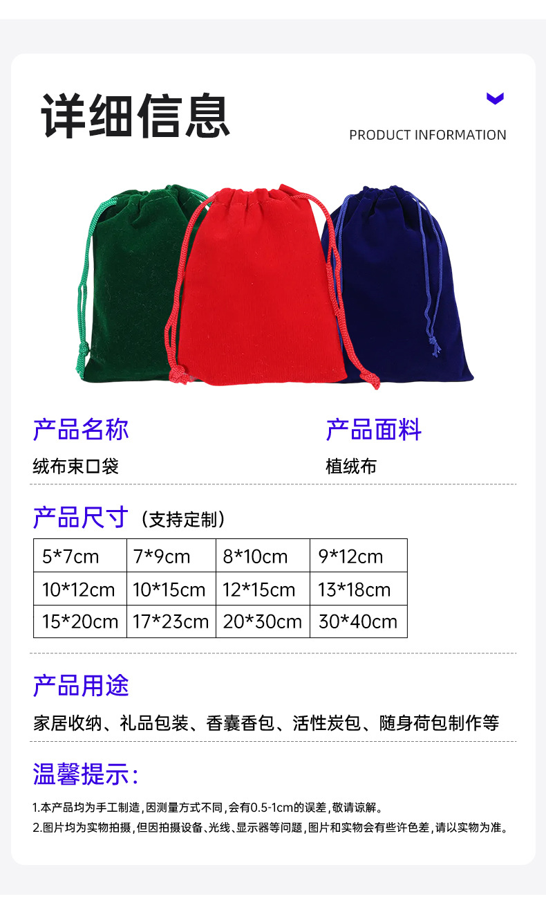 Specification model: Black; 12*15cm; flocking cloth