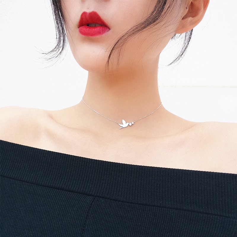 Women's Korean-style simple swallow platinum necklace fashionable small fresh Diamond-embedded bird clavicle chain elegant short necklace
