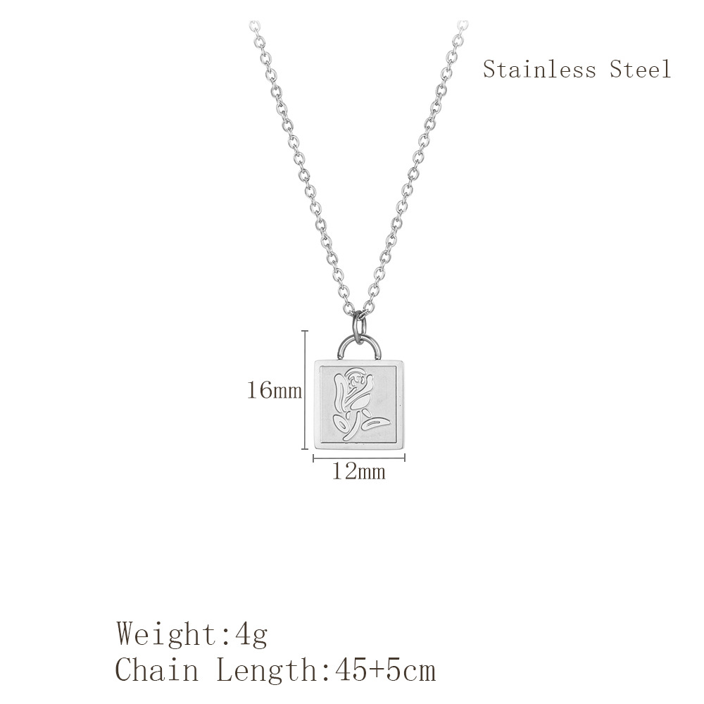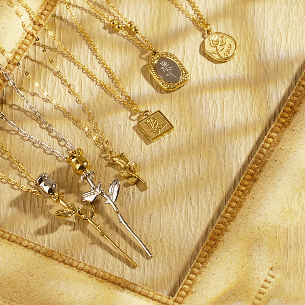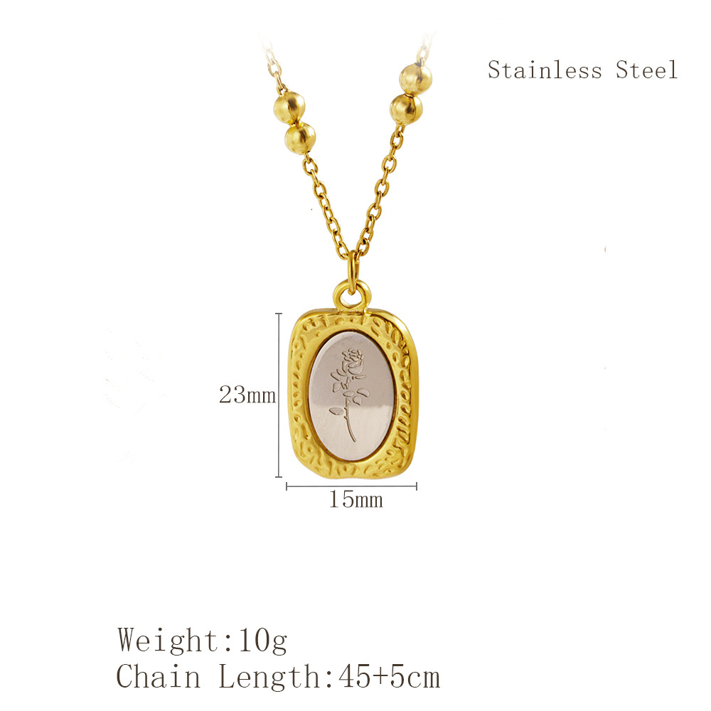 French Retro Romantic Rose Pendant Necklace Women Fashion Stainless Steel Flower Round Brand Collarbone Chain