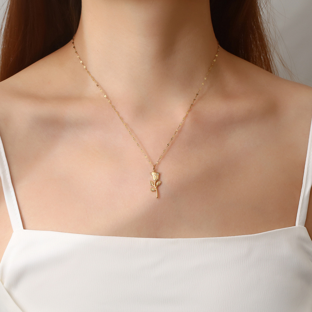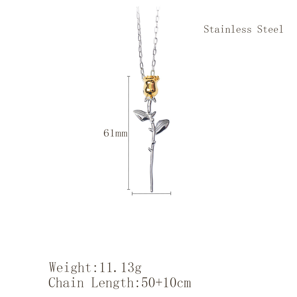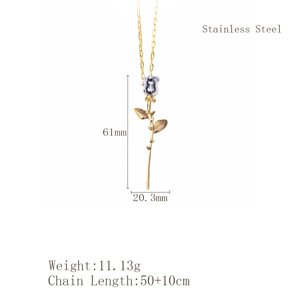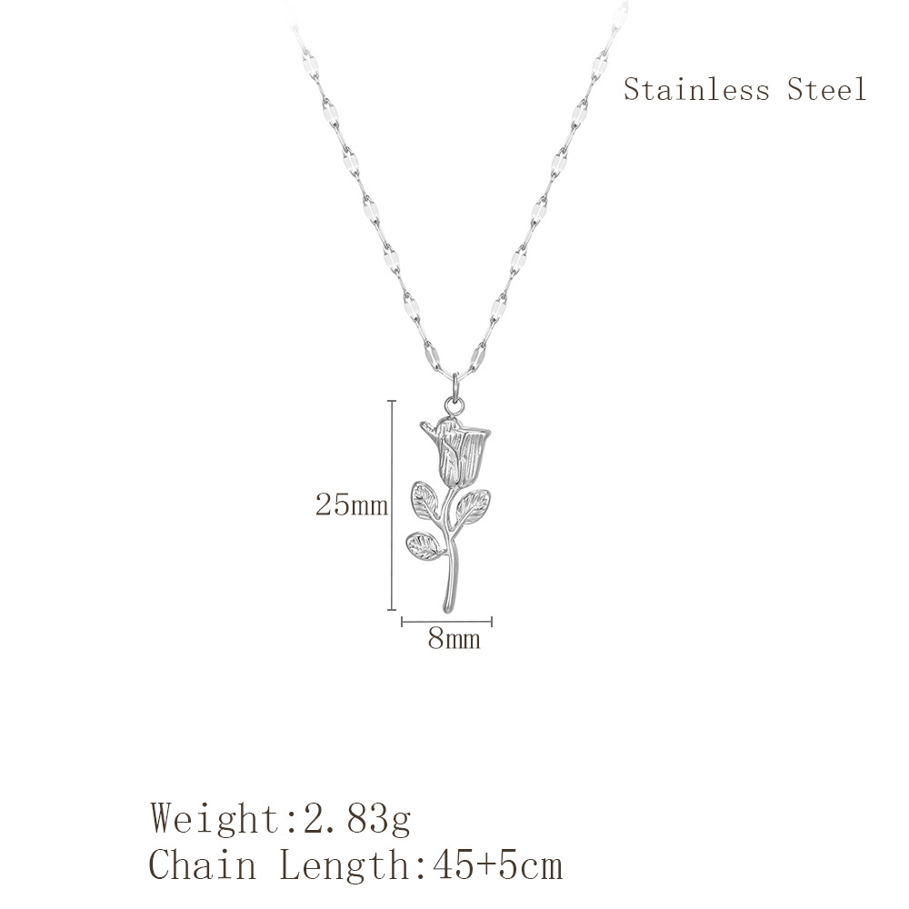 French Retro Romantic Rose Pendant Necklace Women Fashion Stainless Steel Flower Round Brand Collarbone Chain