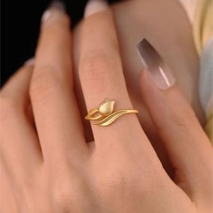 郁金香戒指女小众轻奢遇见幸福开口指环时尚仿沙金花朵素圈女戒