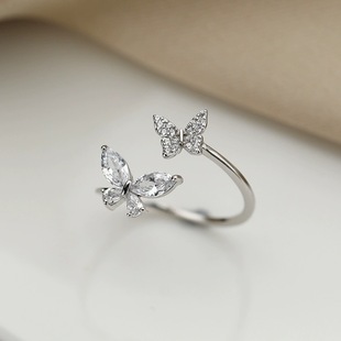 满钻双蝴蝶戒指女个性精致冷淡风食指戒温柔气质甜美女士开口指环