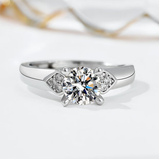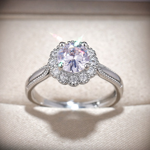 一克拉锆石戒指女富贵花蕊开口指环时尚气质仿莫桑石爱心四爪钻戒
