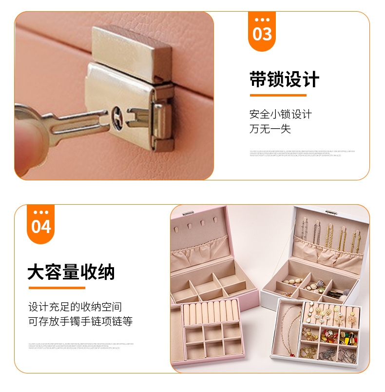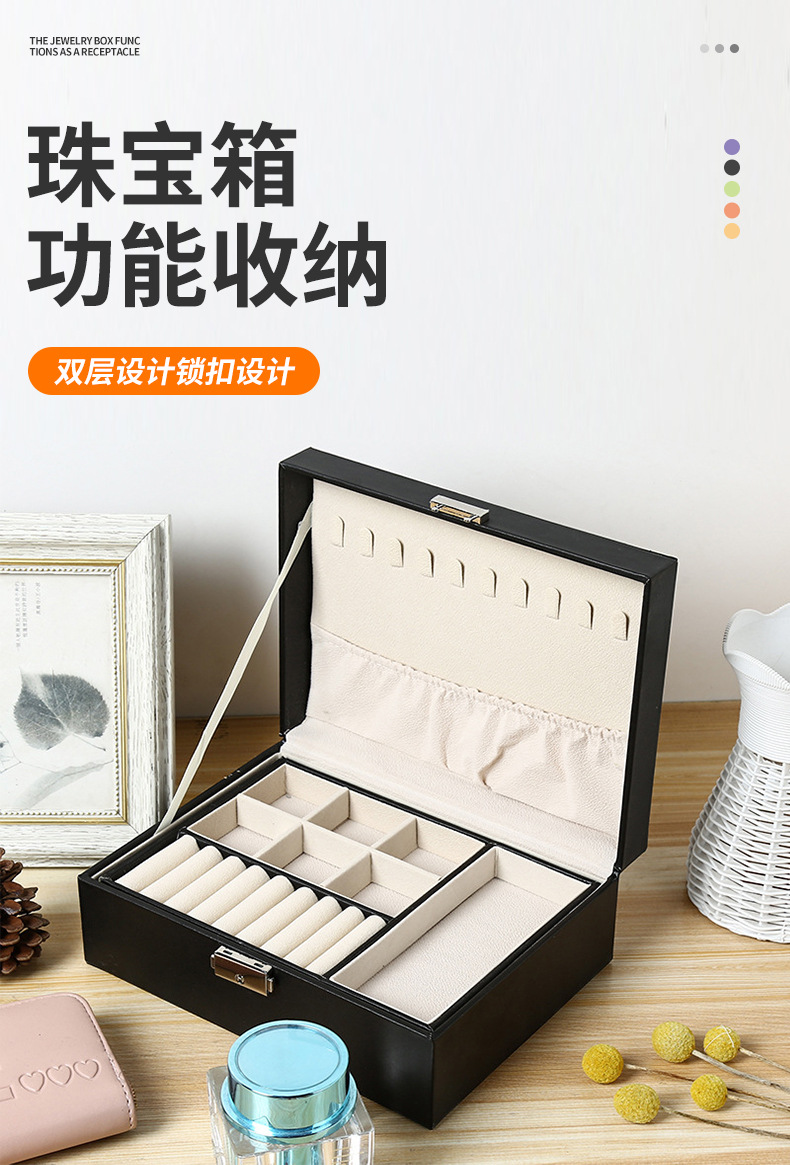 Double layer jewelry box jewelry finishing PU leather gift ring packaging box earrings necklace storage jewelry display