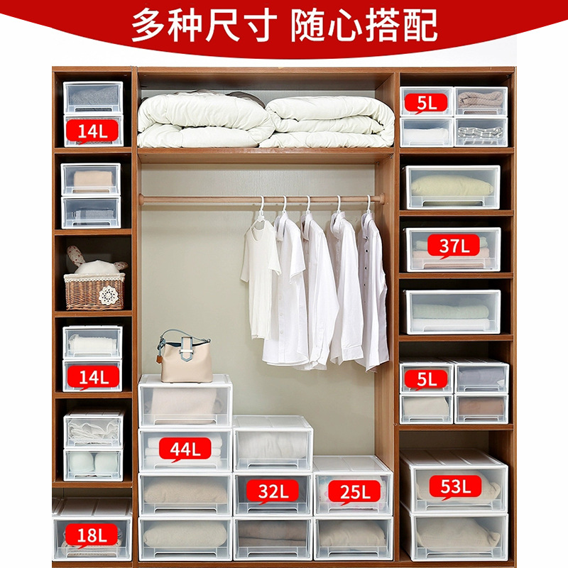 Drawer-type Storage Box Plastic Thickened Wardrobe Multi-layer Combination Transparent Inner Clothes Finishing Cabinet Storage Box