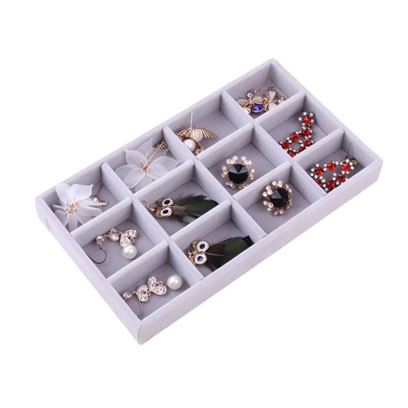 Jewelry Plate Jewelry Display Tray Grey Flannel Earrings Display Dustproof Storage Props Drawer Jewelry Storage Box