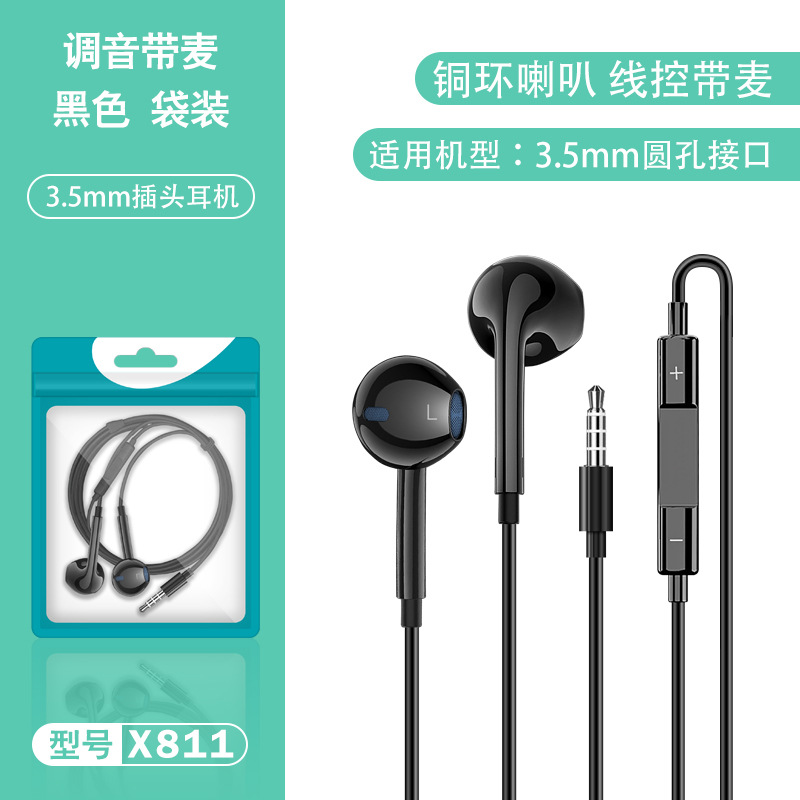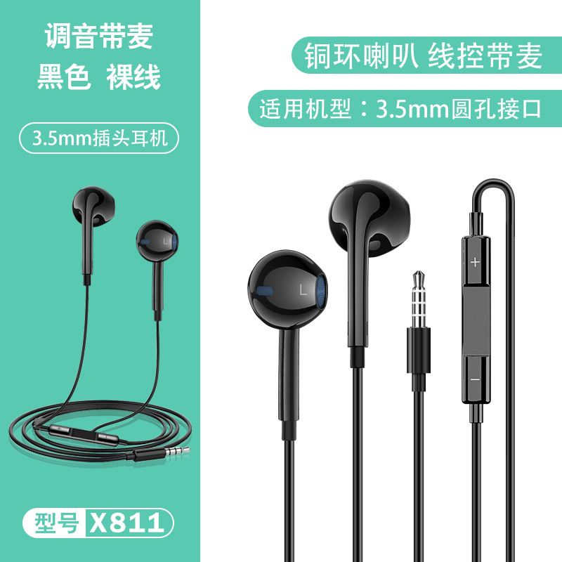 Color: High-quality black copper ring speaker [3.5mm round hole] x811 bare wire