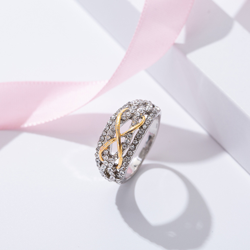 Cross-Border European and American Rhinestone Ring Women's Silver Fashion Hollow Gold and Silver Two-Color Ring Diamond Jewelry Factory Wholesale