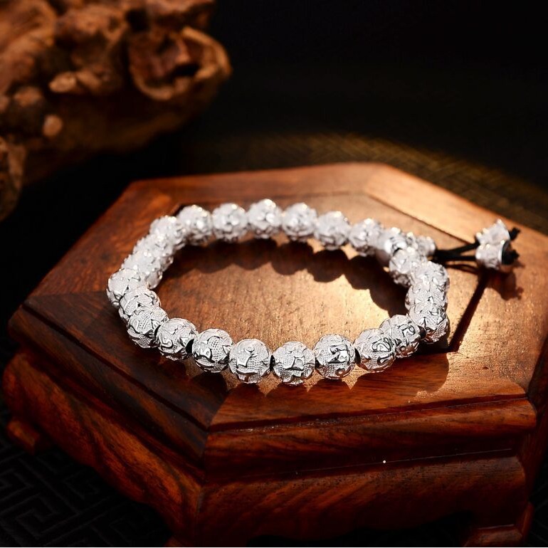 本产品是白铜材质镀银 重量为8M珠:40克 10M珠:56克 12M珠:88克.14M珠:135克