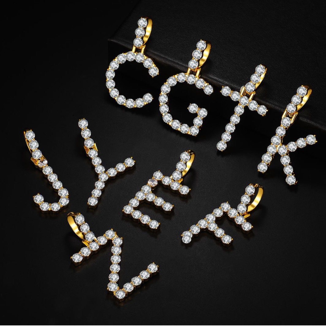 26 Letter Pendant Necklace European and American Hip-Hop Rap Style Inlaid with 4mm Zircon Gold-Plated Trendy Brand Jewelry