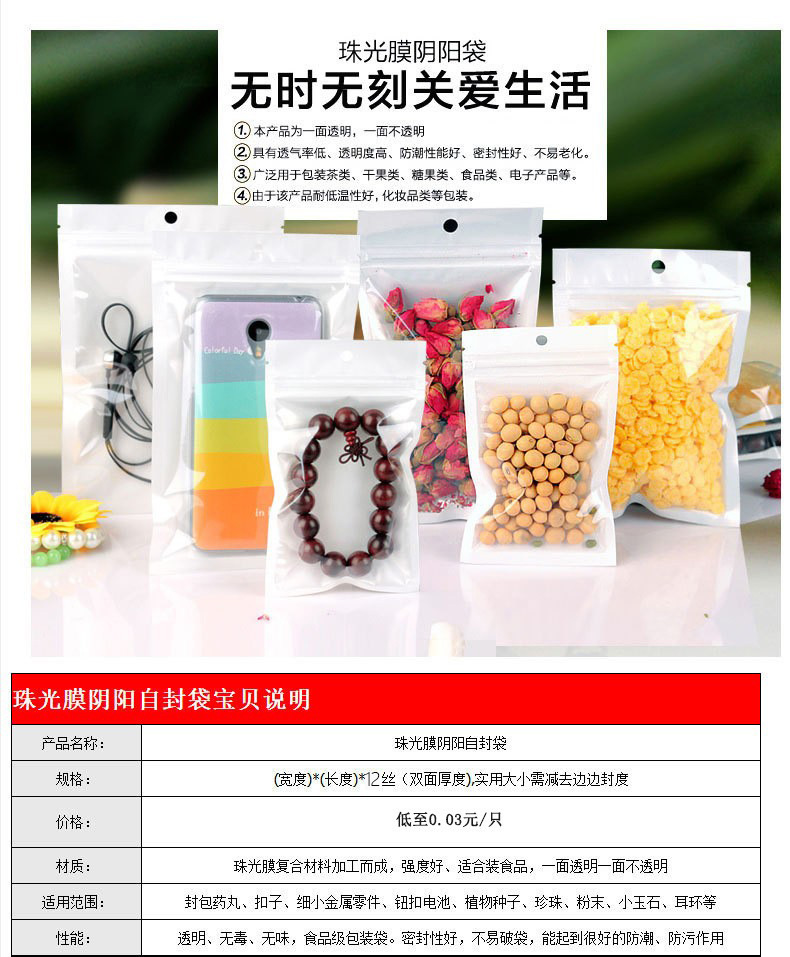 Scope of application: Suitable for food packaging, dry goods, dried fruits, nuts, whole grains, clothing, accessories, jewelry, parts, headphones, mobile phone cases, data cables, electronic accessories, etc