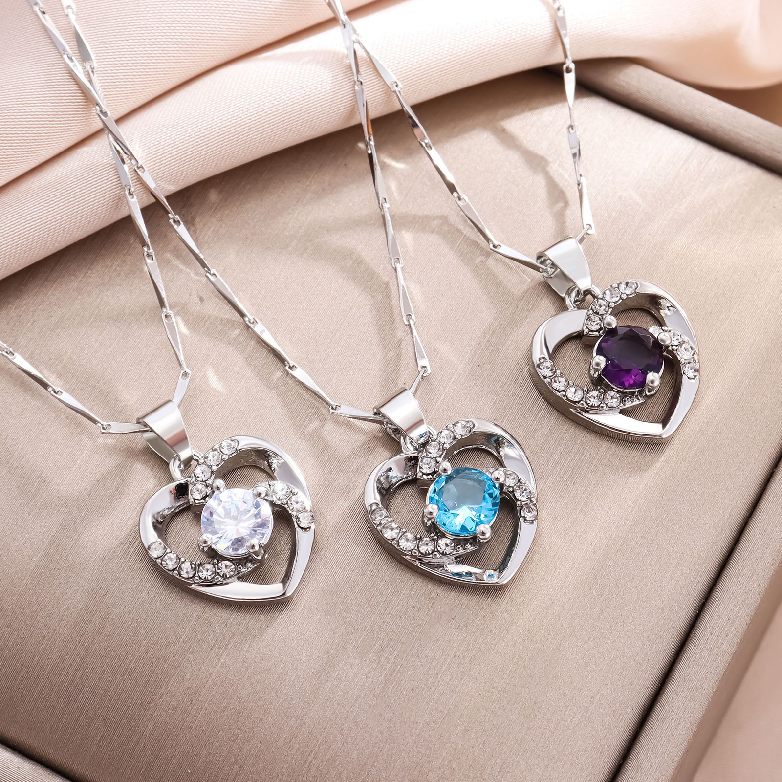 Color: White diamond pendant + necklace