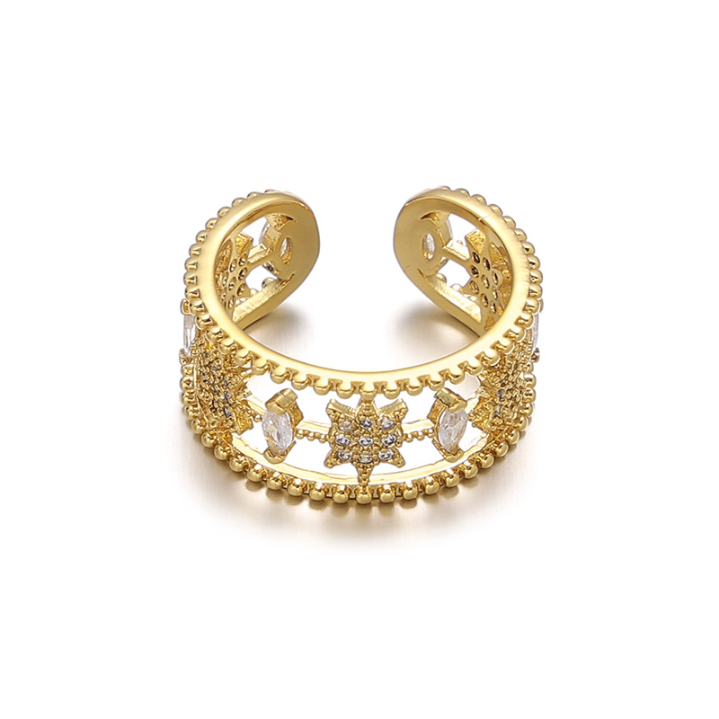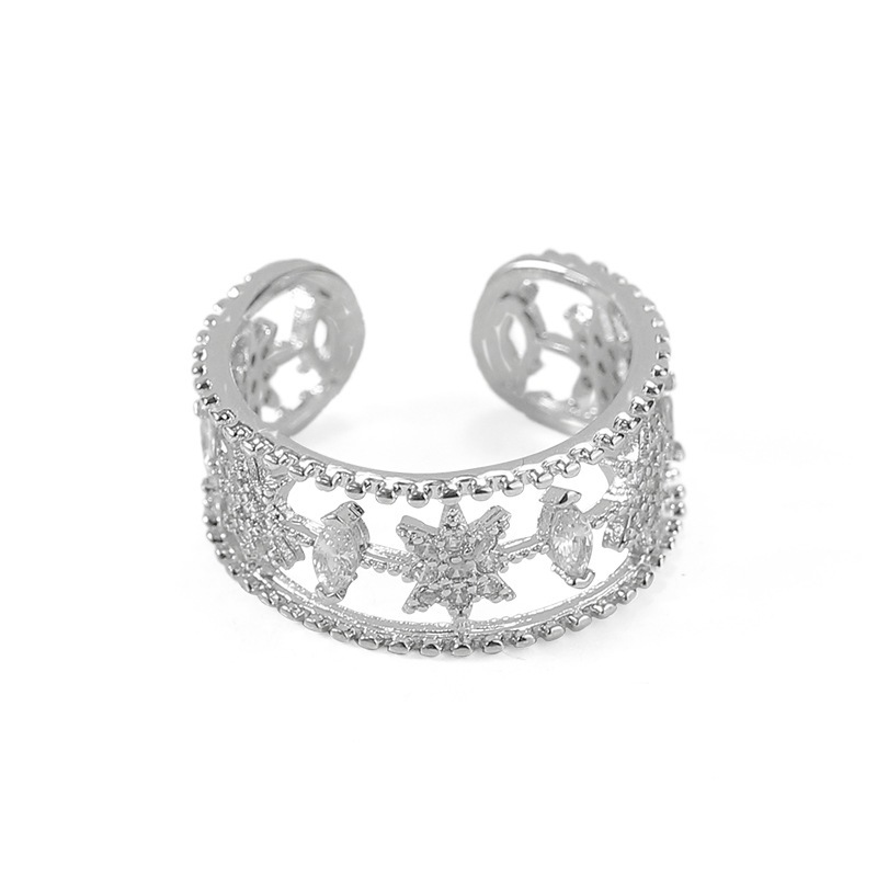 European and American Accessible Luxury Cut Out Zircon Star High-End Open Ring Female Palace Style Fashion Niche Design Jewelry
