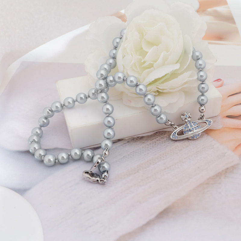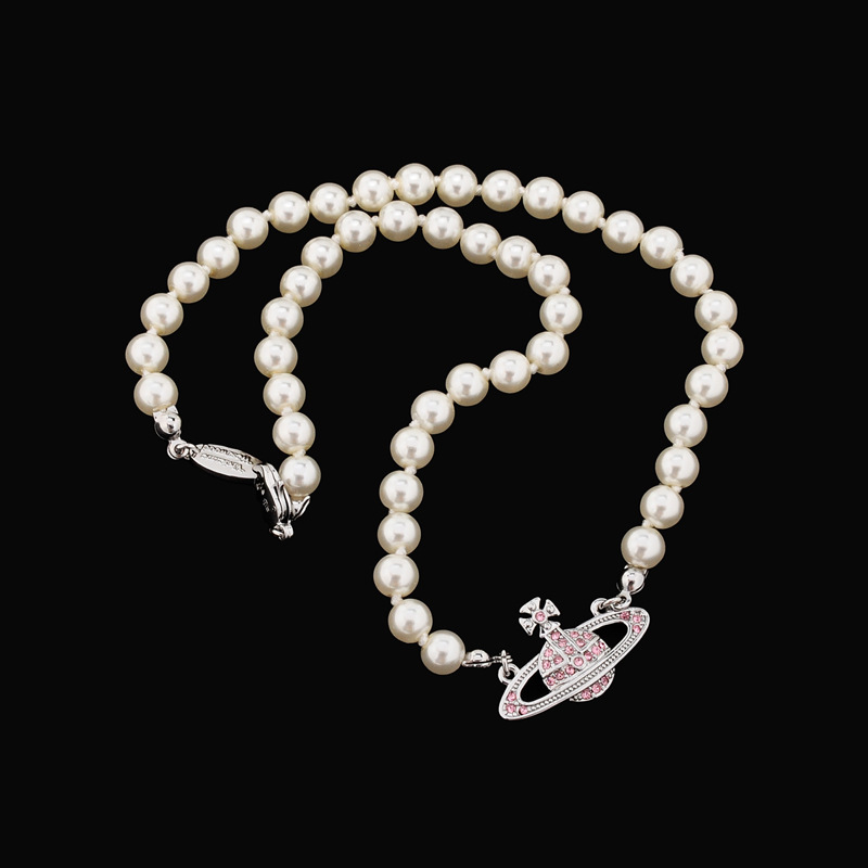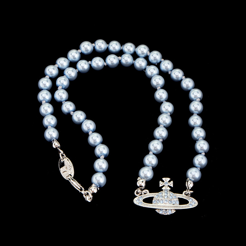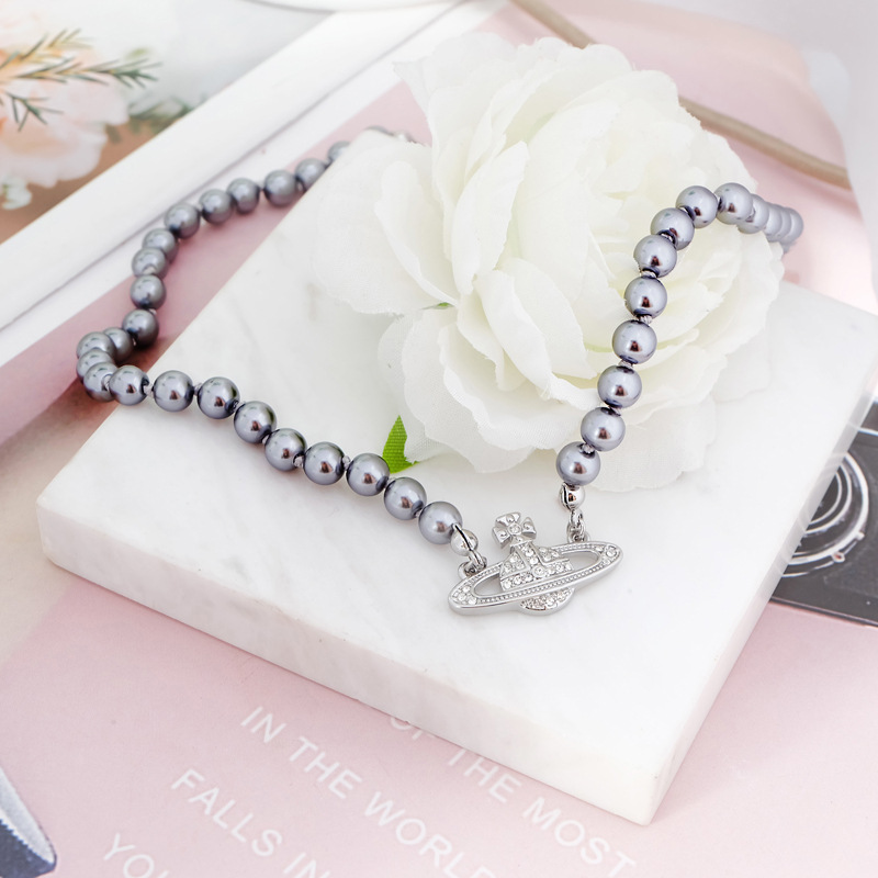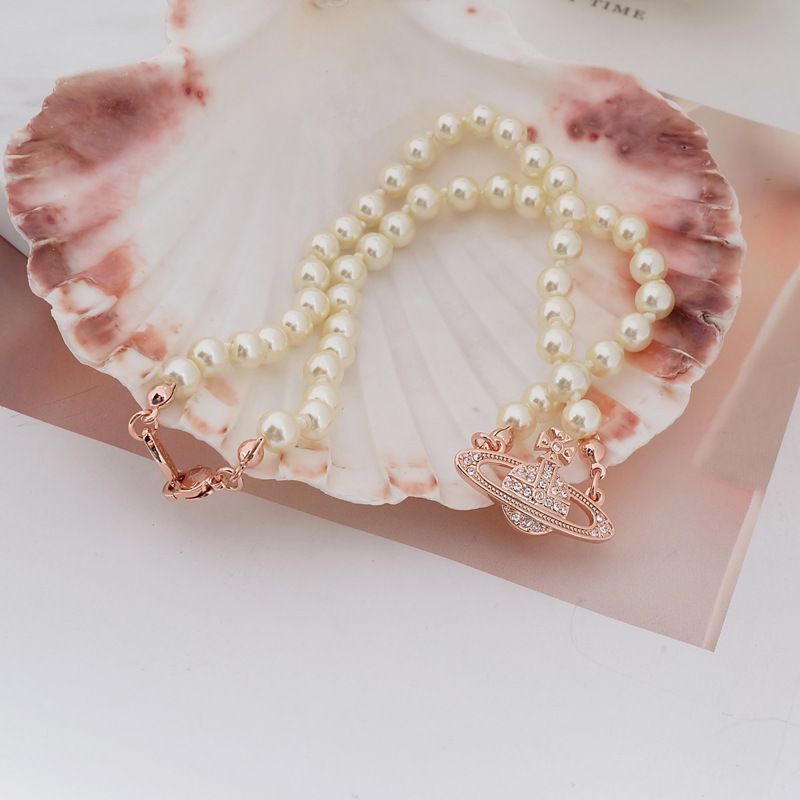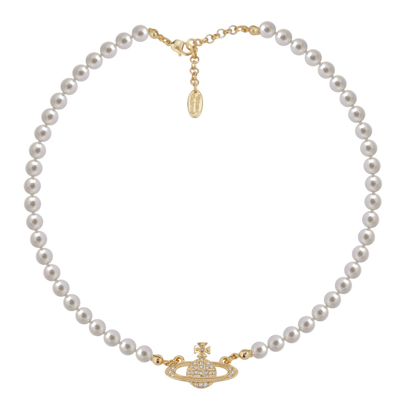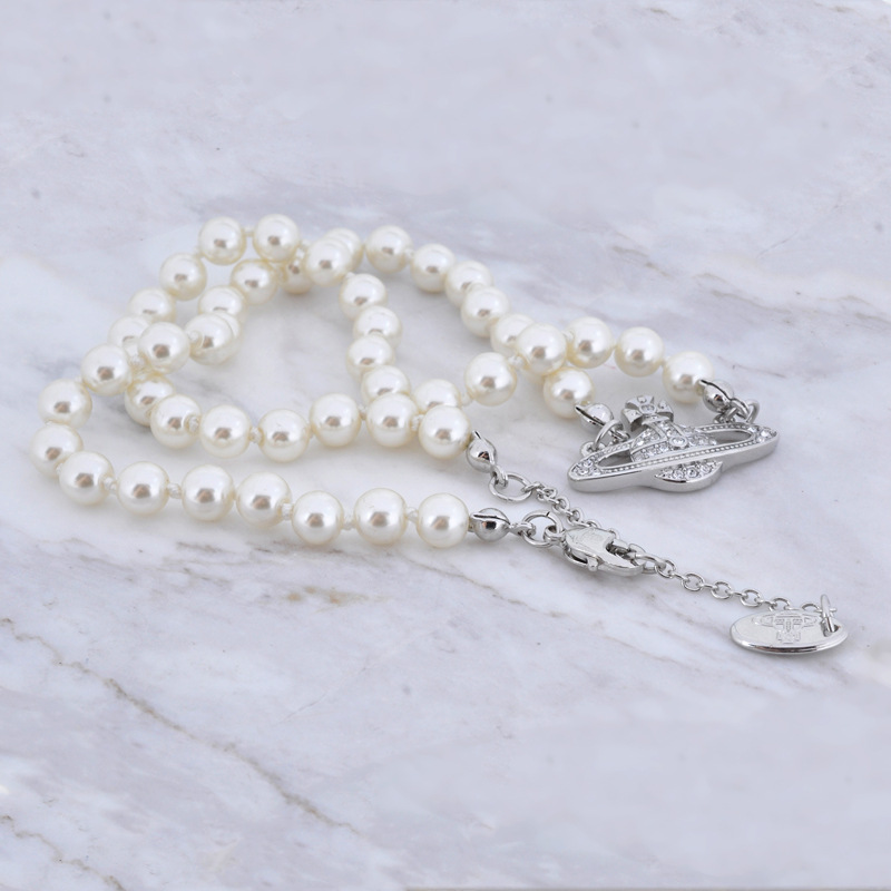 Queen Mother Classic Temperament One Layer Saturn Pearl Necklace with LOGO Lobster Buckle Wholesale