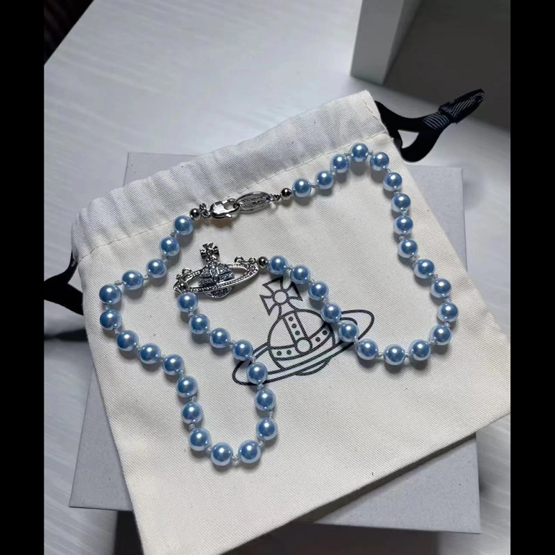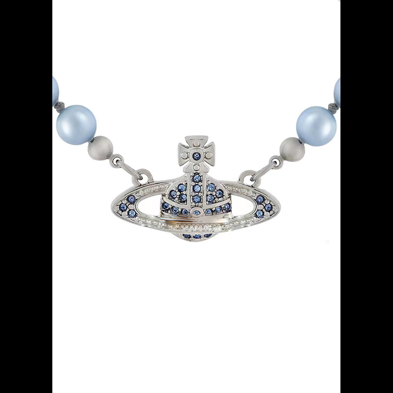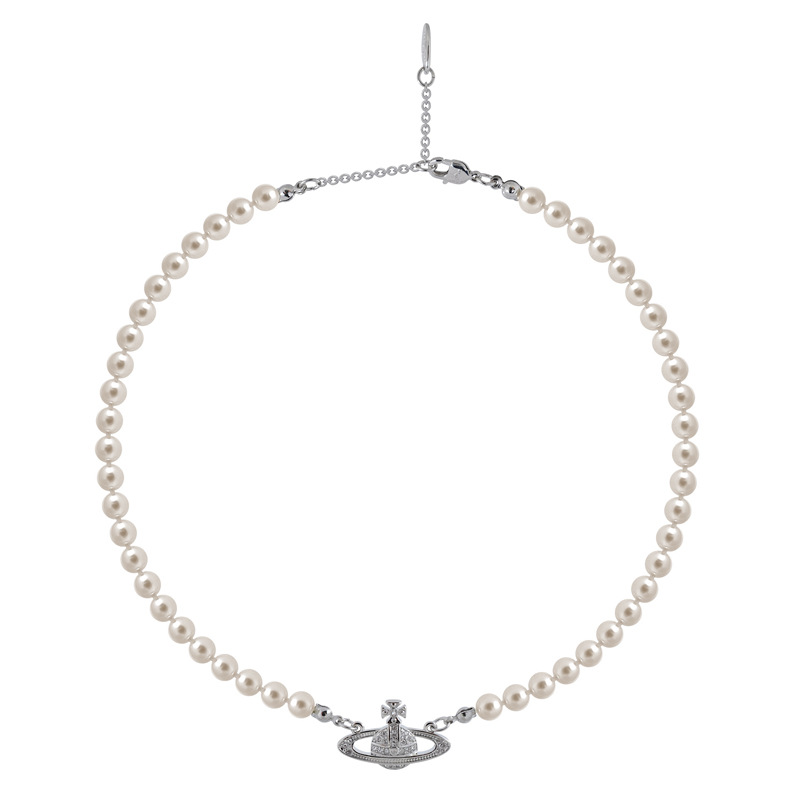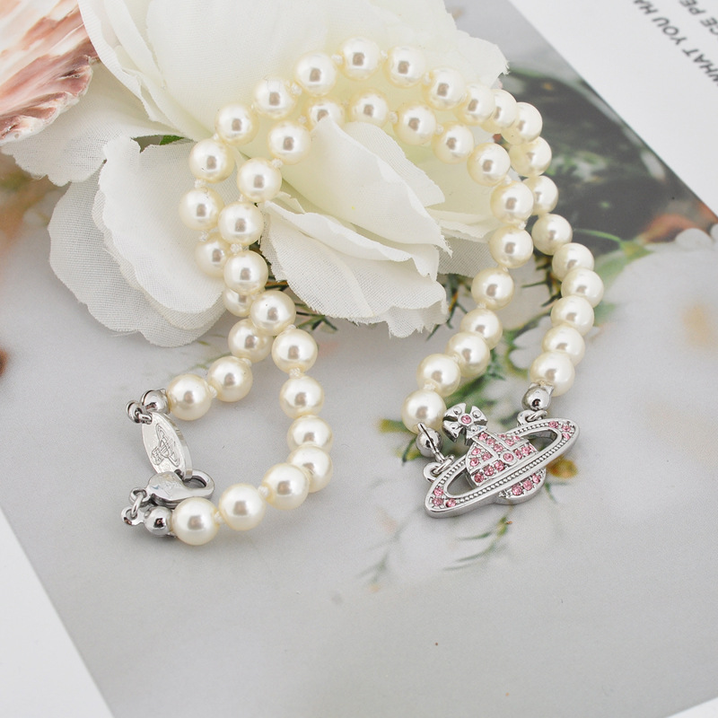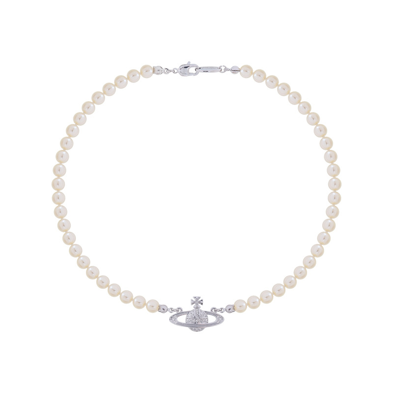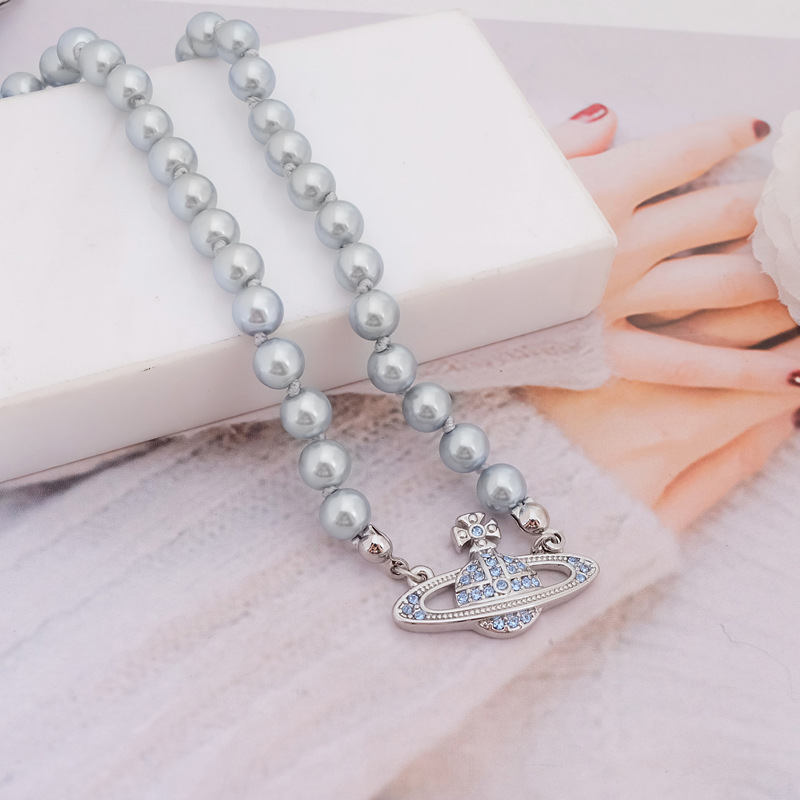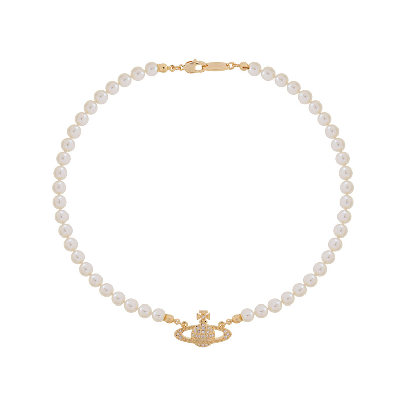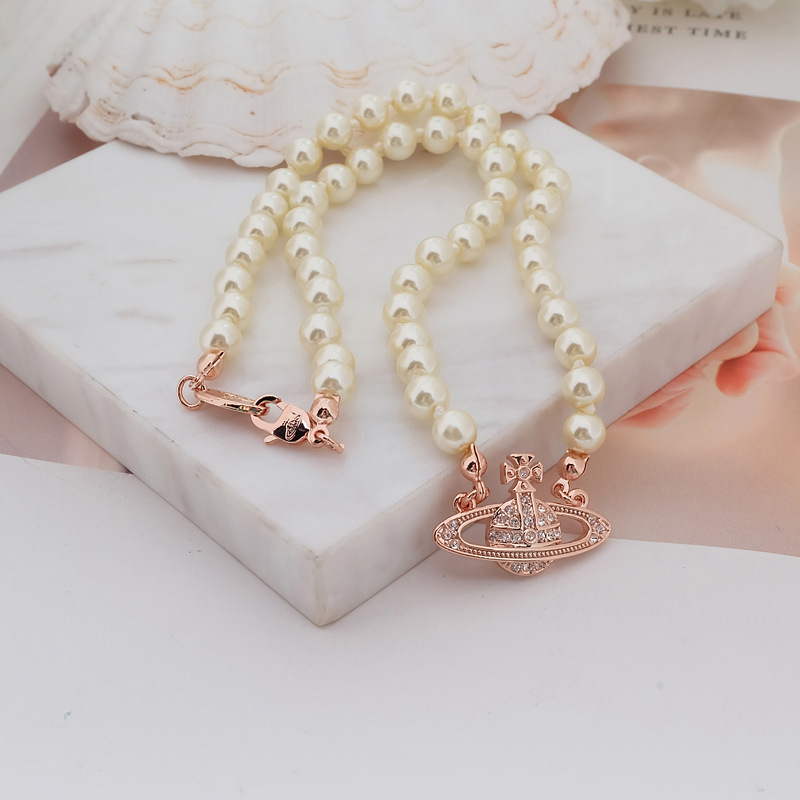 Queen Mother Classic Temperament One Layer Saturn Pearl Necklace with LOGO Lobster Buckle Wholesale