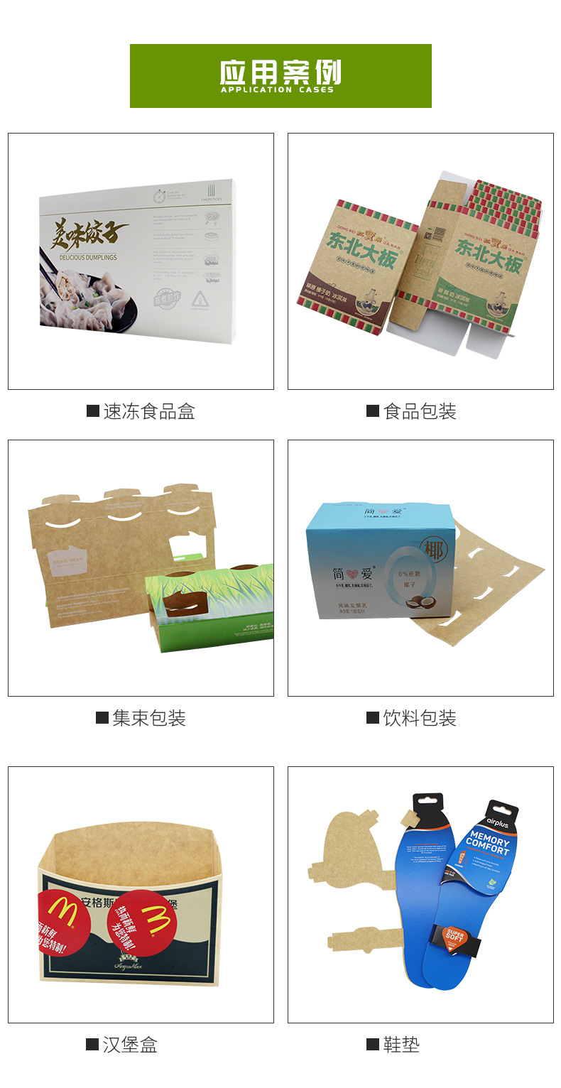 应用领域:冷冻冷藏食品包装,固体类食品,饮料包装、圣诞贺卡等
