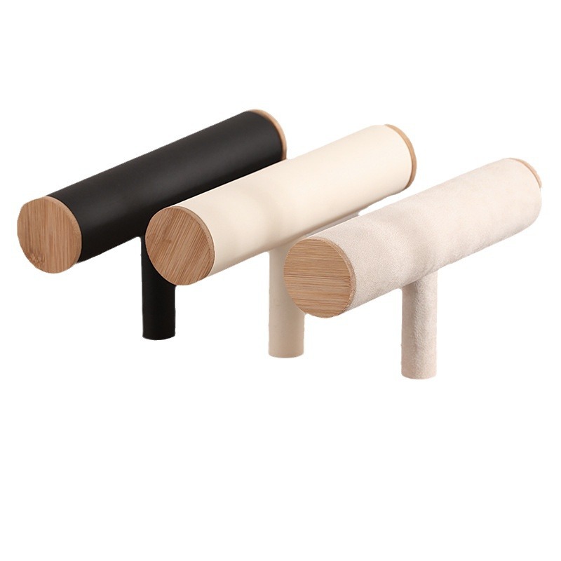 Color: Bamboo-wood Cylinder Double-layer Bracelet Rack Deerskin Velvet