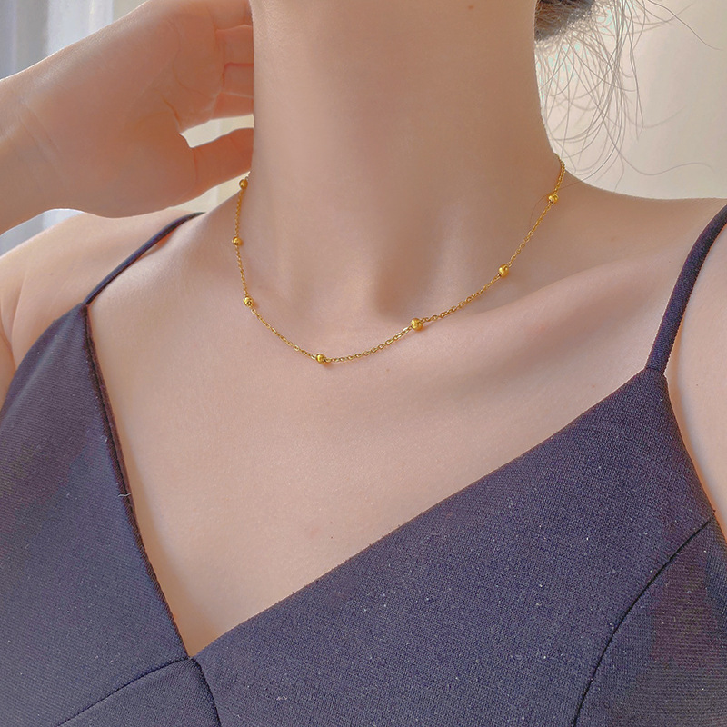 Temperament titanium steel 18K rose gold round bead bracelet color gold simple accessories girls gift jewelry pendant jewelry