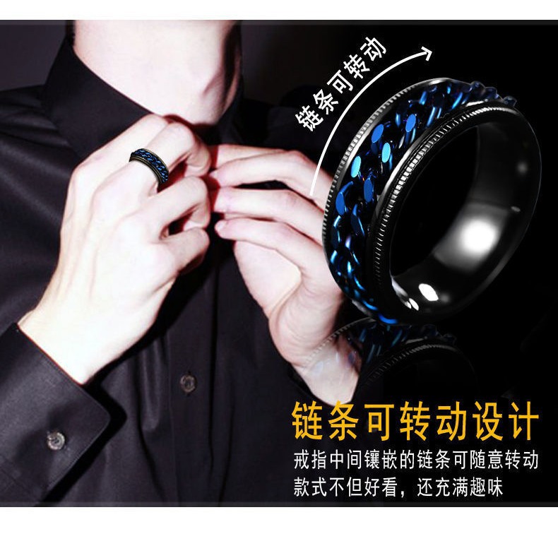 Cross-border e-commerce supply Amazon hot-selling rotatable chain bottle opening ring titanium steel embossed fashion jewelry