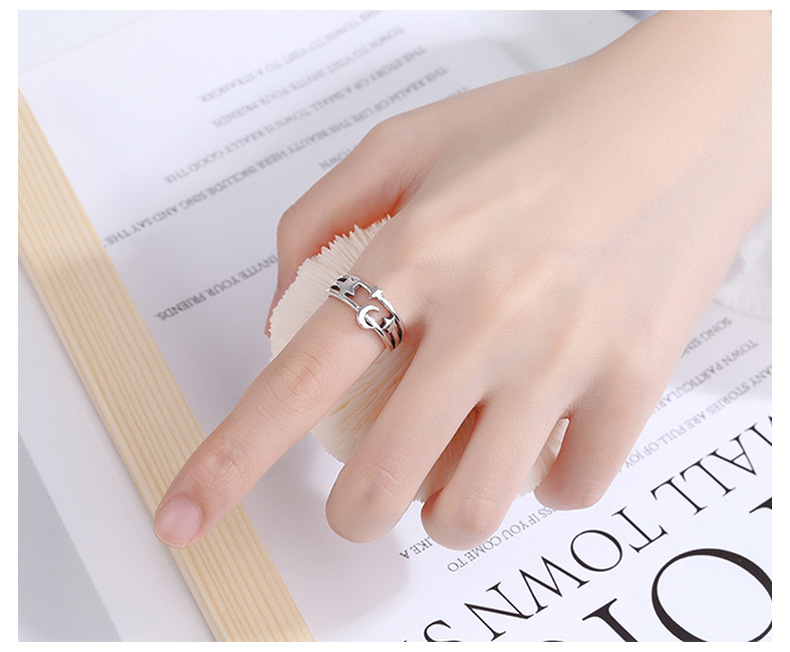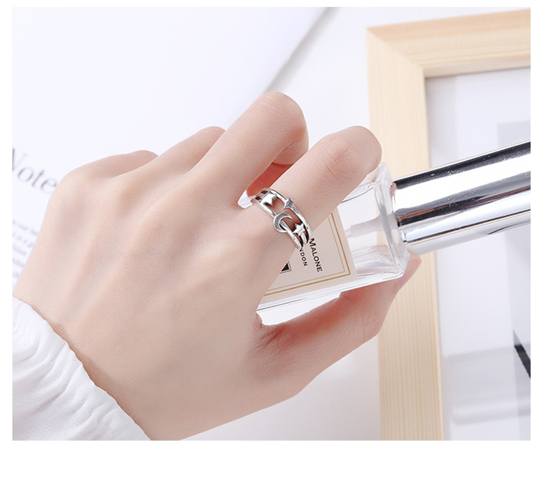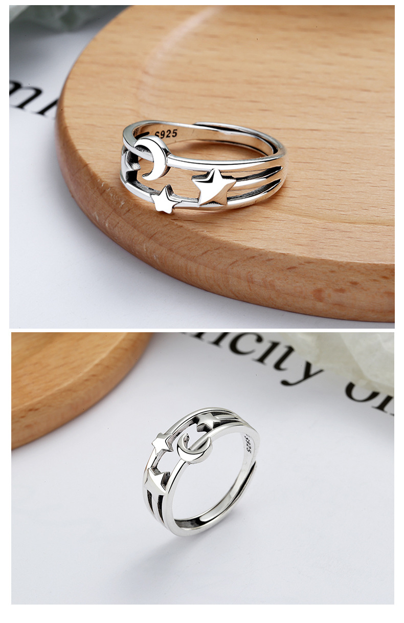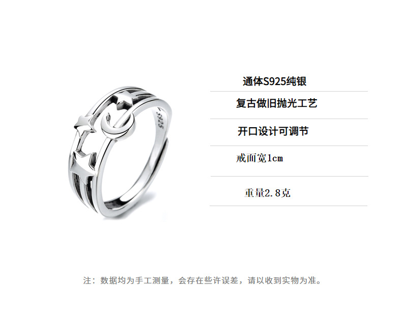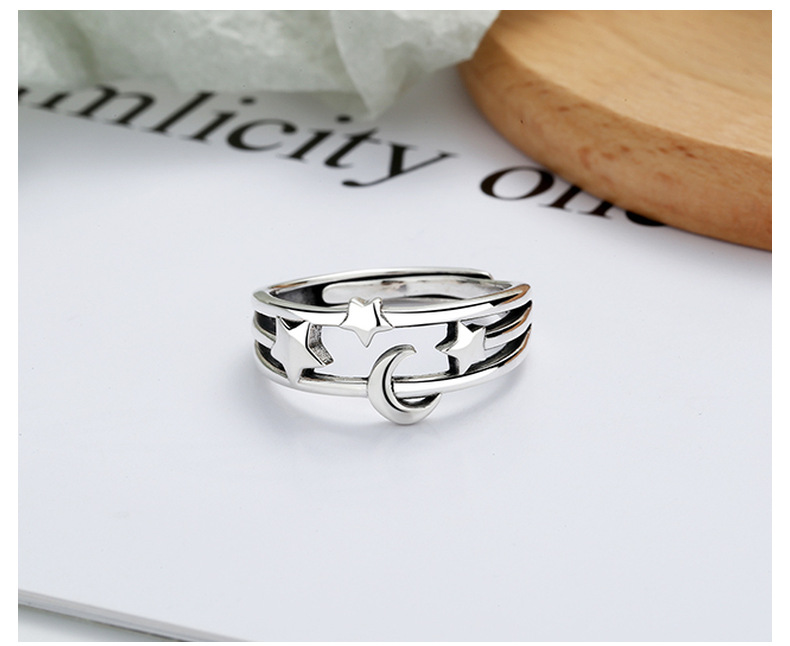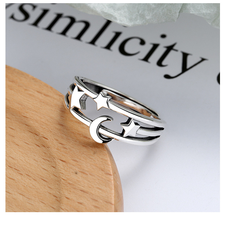 Star Moon Japanese and Korean retro 925 sterling silver ring Chanel style starry ins fashion Open ring girlfriend girlfriend gift