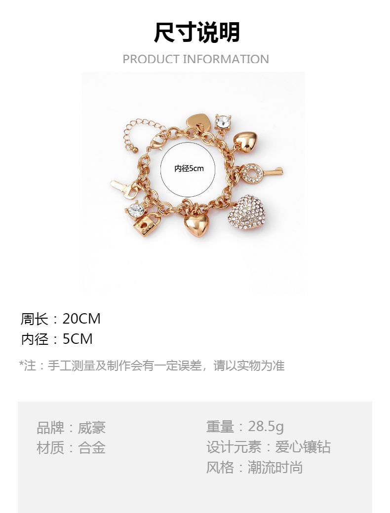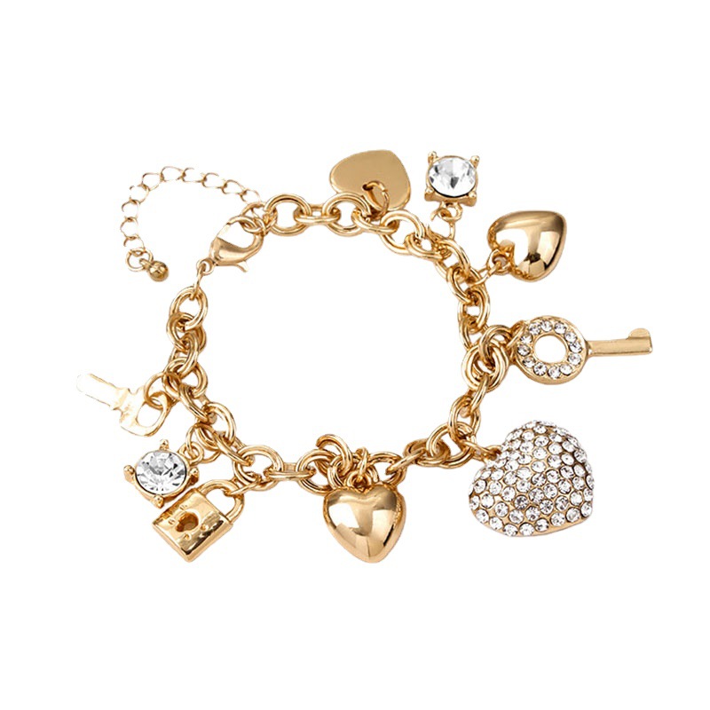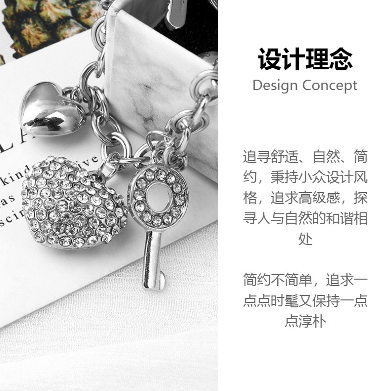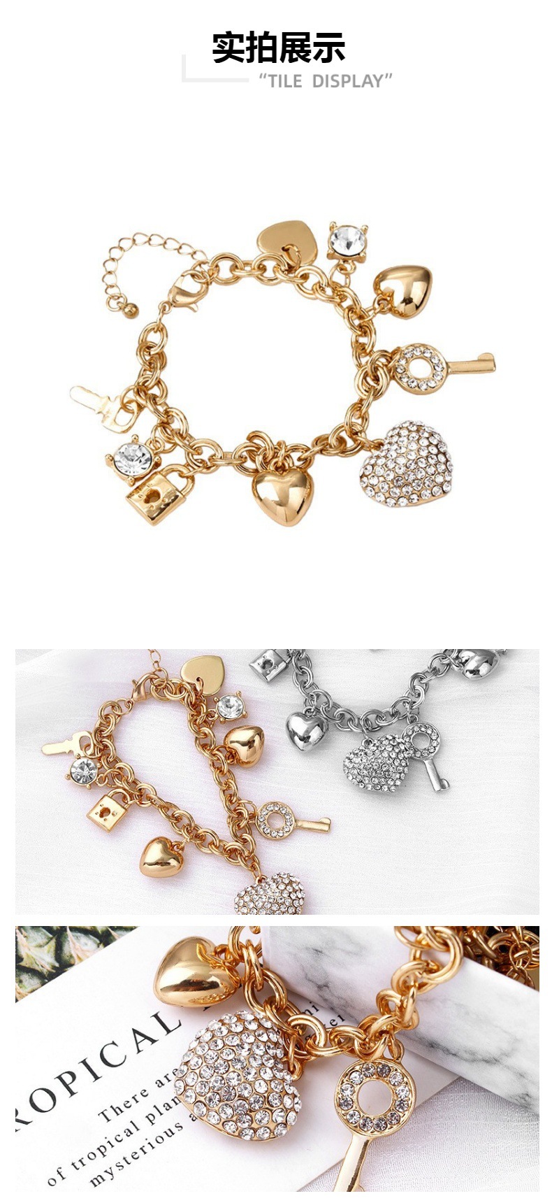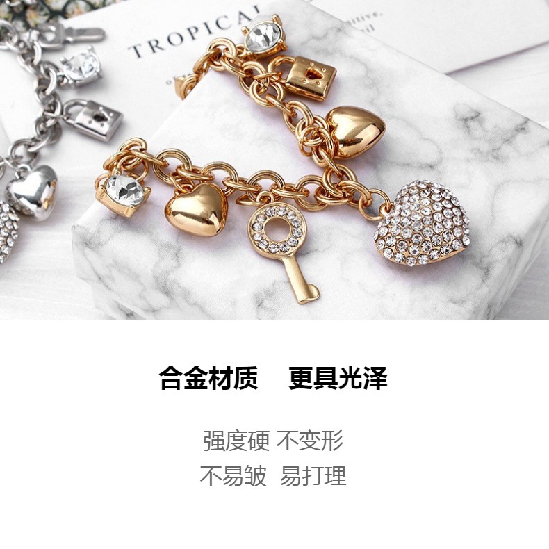 European and American love lock jewelry personality full diamond peach heart gold and silver bracelet female diamond crystal bracelet vintage bracelet direct sales