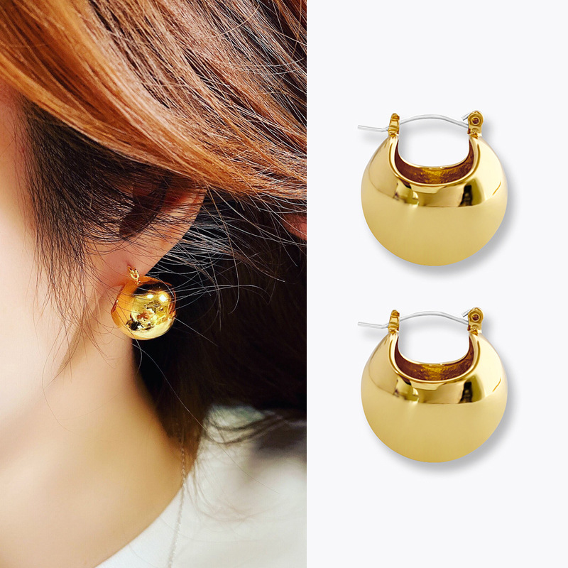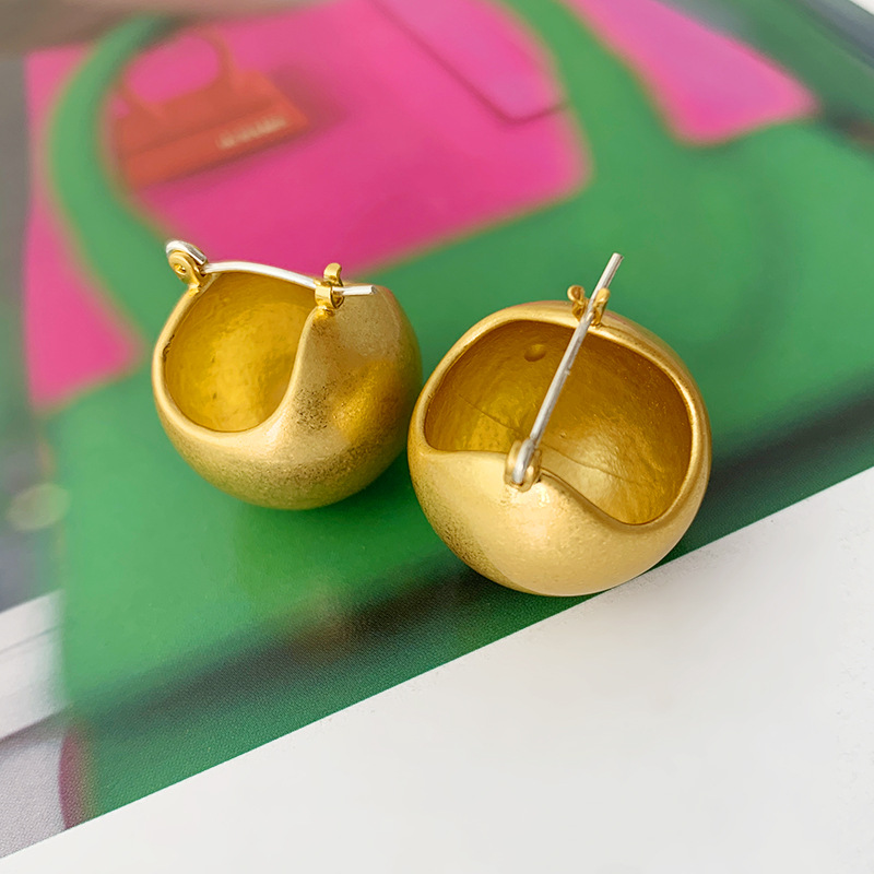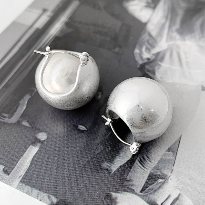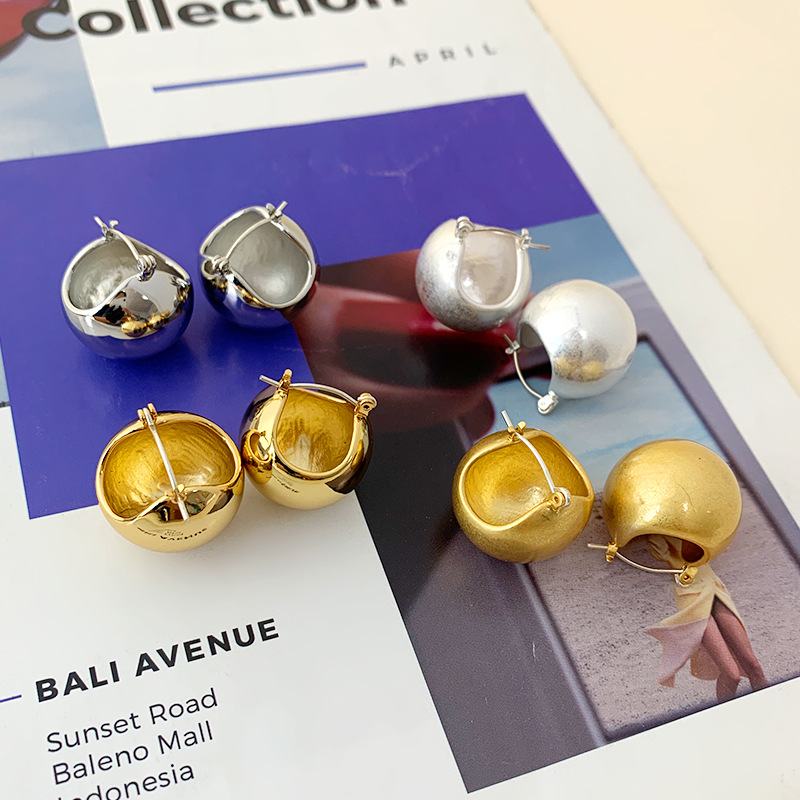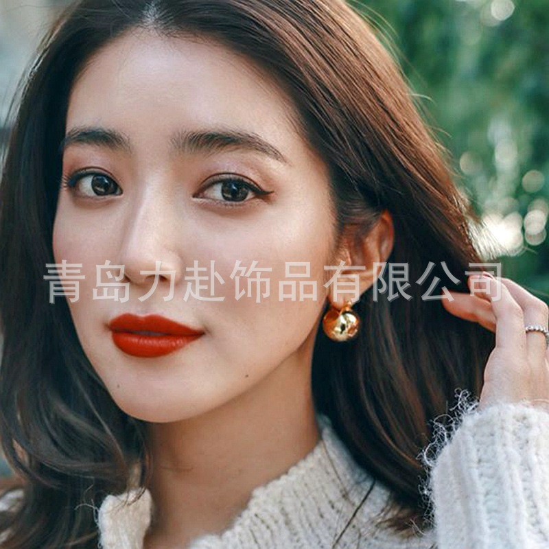 European and American Niche Design Sense ins Cold Style Metal Ball Round Ball Earrings Elegant Women's Fashion All-Match