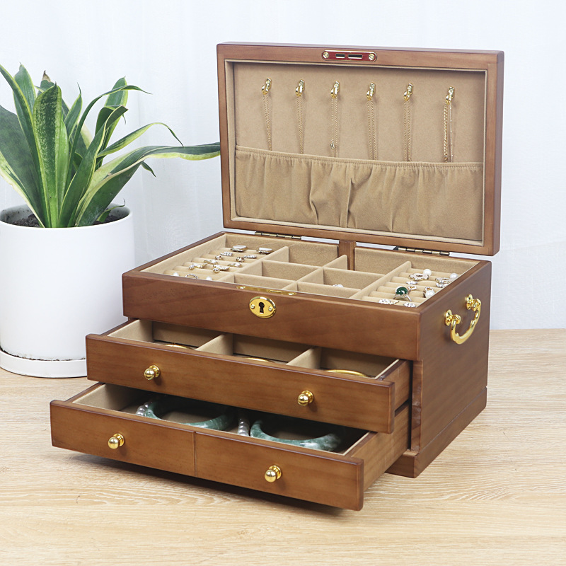 Solid wood jewelry box wooden vintage princess with lock European South Korea jewelry storage box wedding birthday gift