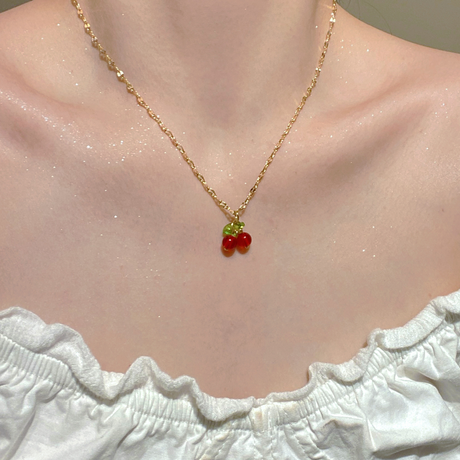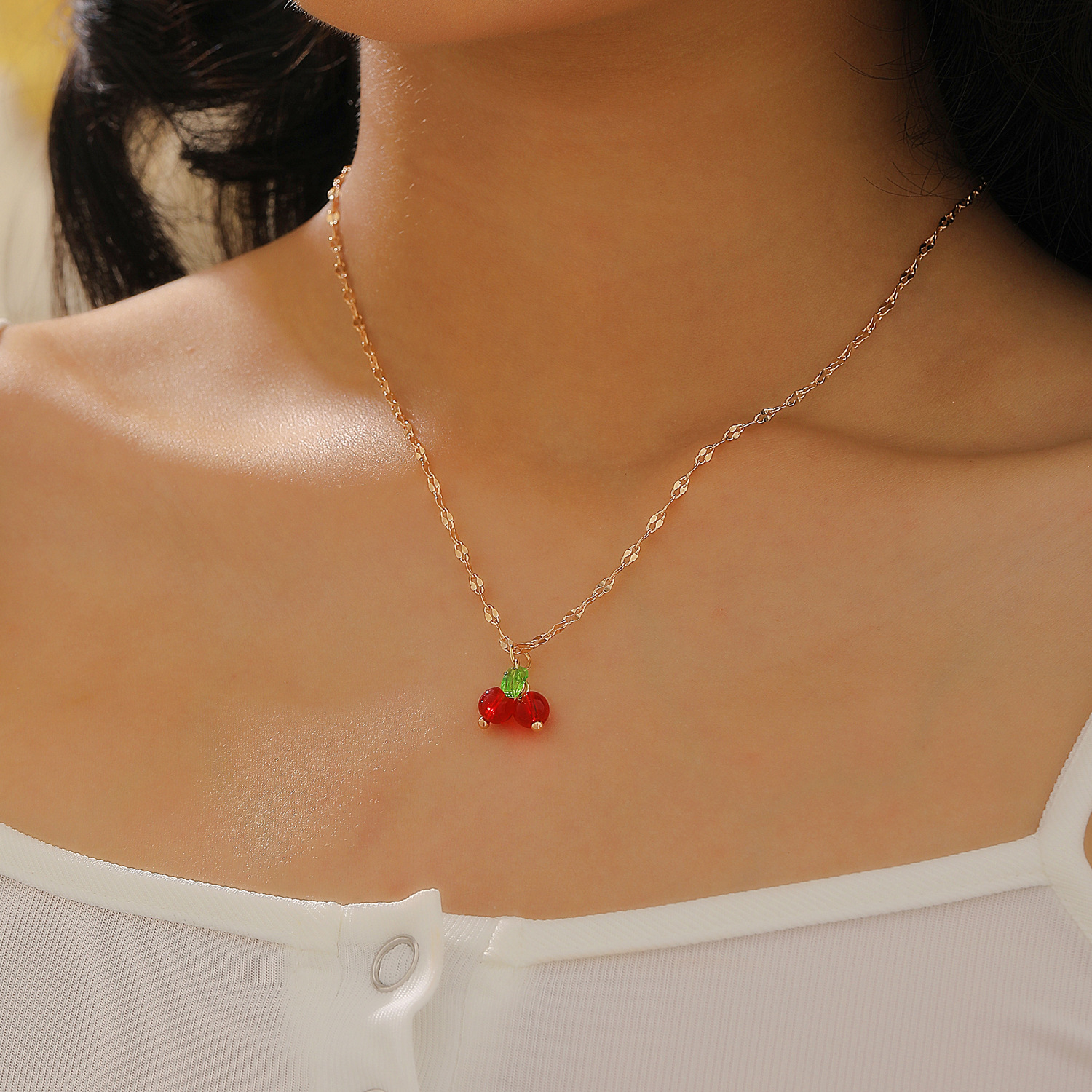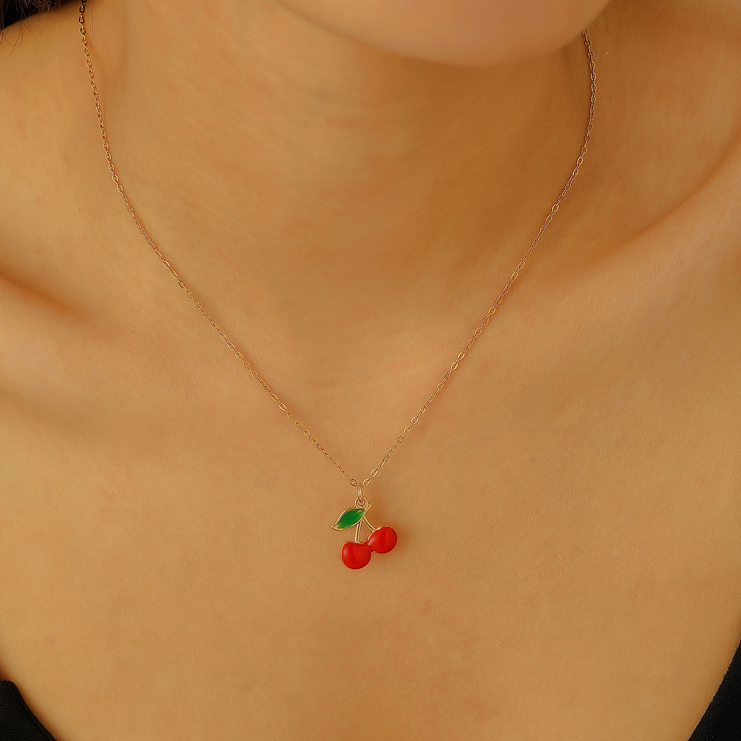 Europe and the United States cross-border jewelry sweet temperament diamond women's necklace exquisite cherry copper set zircon fruit clavicle chain necklace